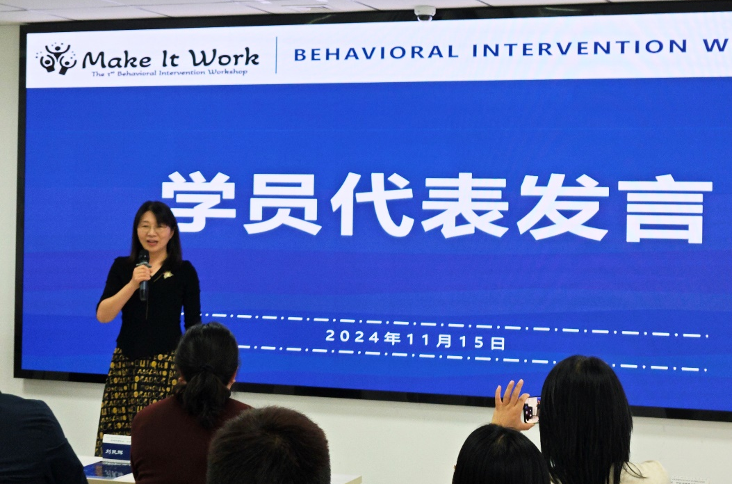 刘民辉、李兆君为所有学员颁发了结业证书。两名优秀学员代表梅迎雪和赵杰分别发言,他们表示授课教师非常专业和敬业,精心设置课程内容,耐心解答学员问题,助教认真负责。通过本次培训对行为干预有了系统化的理解,对今后的科研项目申报和实施非常有帮助。