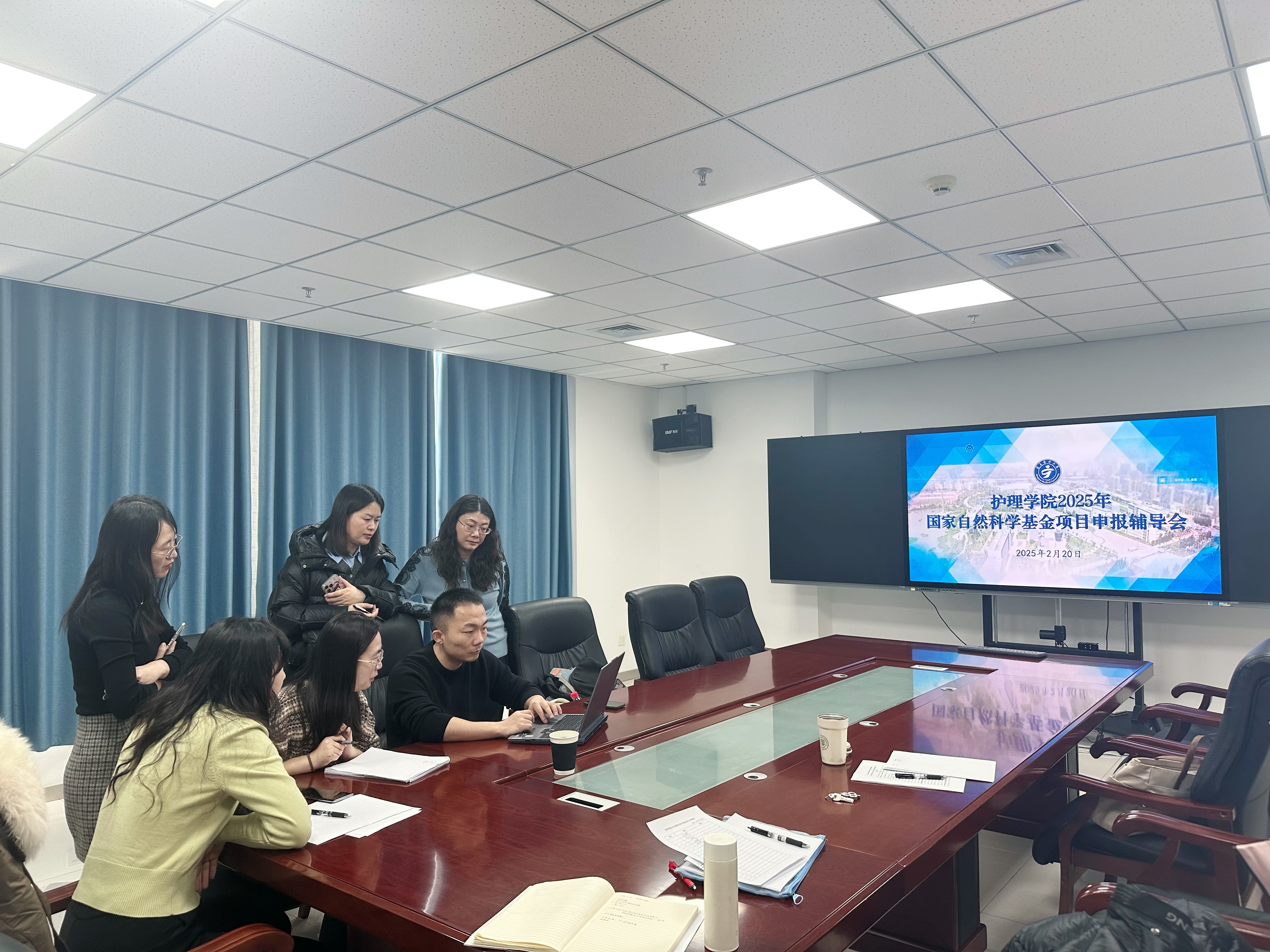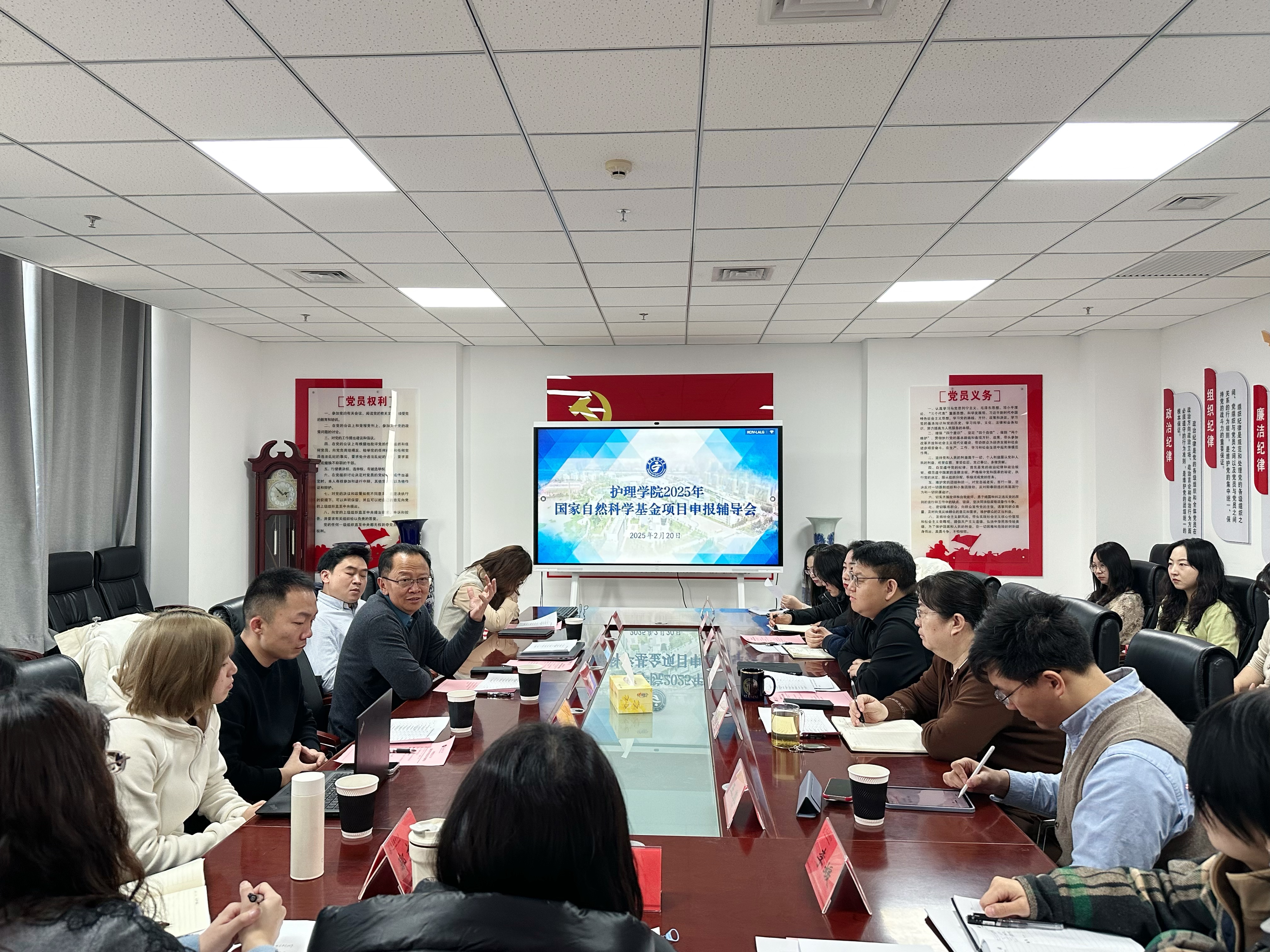 2025年2月20日,护理学院特邀中南大学湘雅医院谢辉教授和殷豪教授两位专家在知行楼605会议室和1015会议室开展2025年国家自然科学基金项目申报辅导会。唐四元院长、刘民辉执行院长、李兆君副院长和学院国家自然科学基金全体申报教师参加。
