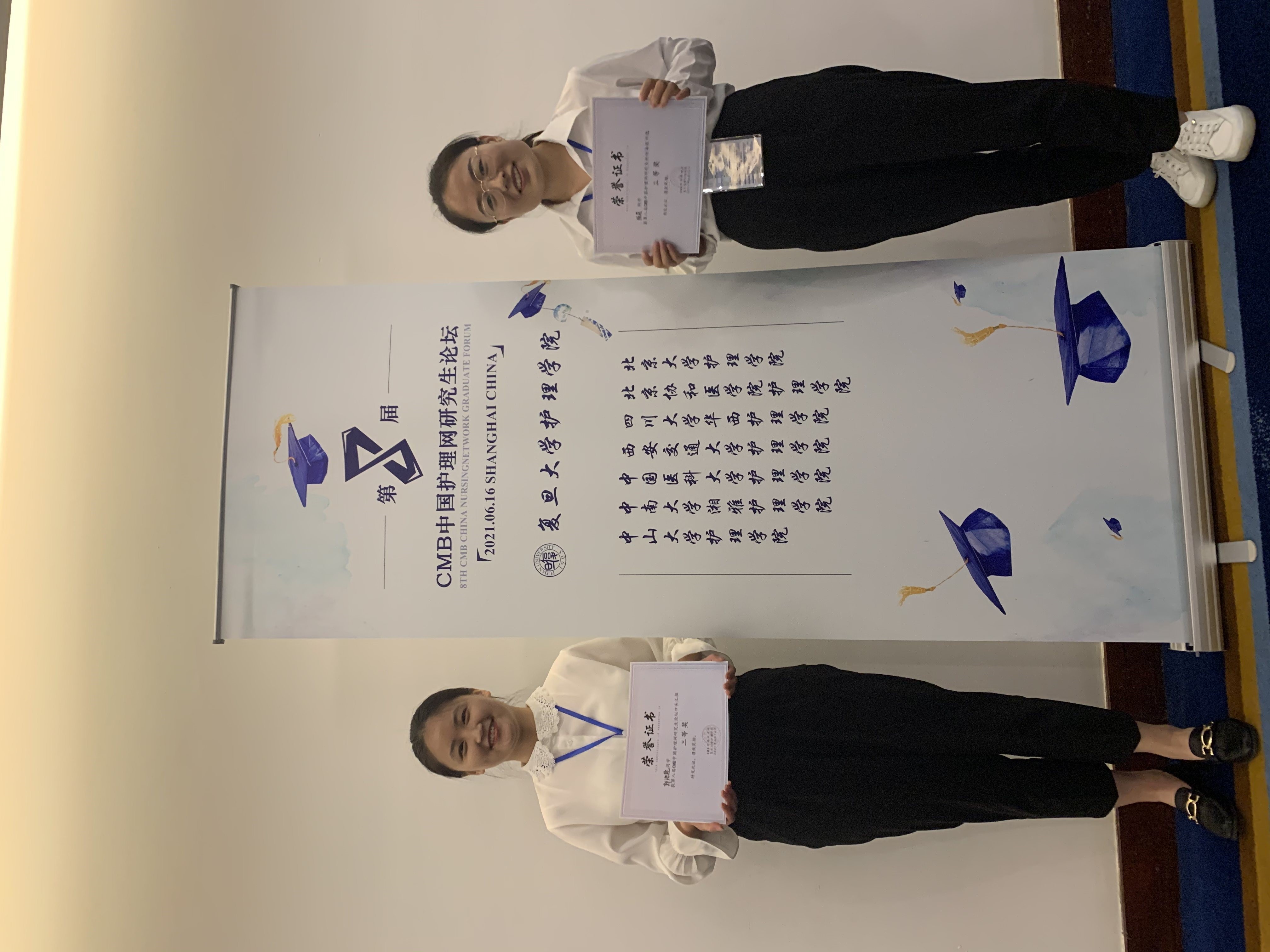此次论坛收到全国54所高校护理学院的170篇投稿,专家对投稿的研究生学位论文进行了严格评选,遴选出了81篇论文,分别做现场论文口头汇报和海报展示。我院研究生郭浩乾的学位论文《基于家庭健康责任人的老年人“互联网+”家庭护理管理模式研究》(指导教师:宁艳花副教授)获口头汇报评比三等奖,陈莉的学位论文《养老机构老年人营养管理循证实践方案的构建研究》(指导教师:宁艳花副教授)获海报展示评比三等奖。