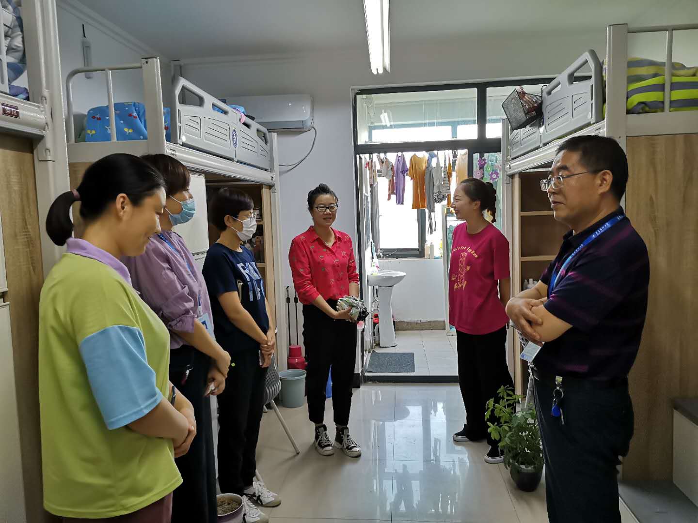 返校前辅导员“点对点”联系返校学生和研究生新生,通知返校时间和注意事项,落实学生健康情况和返程详细路径,保证返校工作安全、平稳。学生进入校园后,学院领导走访宿舍关心同学们的学习、生活和思想状况,学院组织学生开展宿舍消杀和卫生劳动,并将进行思想政治教育、安全教育、防疫知识培训,做好正常学习、生活的各项准备工作。