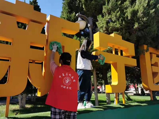 本次活动紧密围绕:健康中国、健康宁医和爱校护校、人人有责两个主题开展。全体新生在辅导员及带班学长的带领下,一边沿环湖及行政广场主线开展健步行活动,了解学校及学院发展历史,探索校园各类标志性建筑深藏的文化内涵,参观各类活动网红打卡点。同时,擦拭沿途宣传栏、灯柱,清理绿化带、草坪、清楚湖岸杂草、枯枝及垃圾,在初秋澄澈的阳光下,用探索与劳动,正式开启第一堂入学教育体验课。