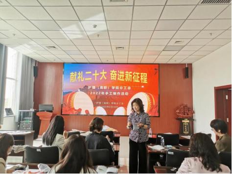 春末夏初之际,5月10日下午,护理(高职)学院分工会联合学院教工第一党支部在雁湖校区知行楼201学术报告厅开展“献礼二十大 奋进新征程”手工制作活动。