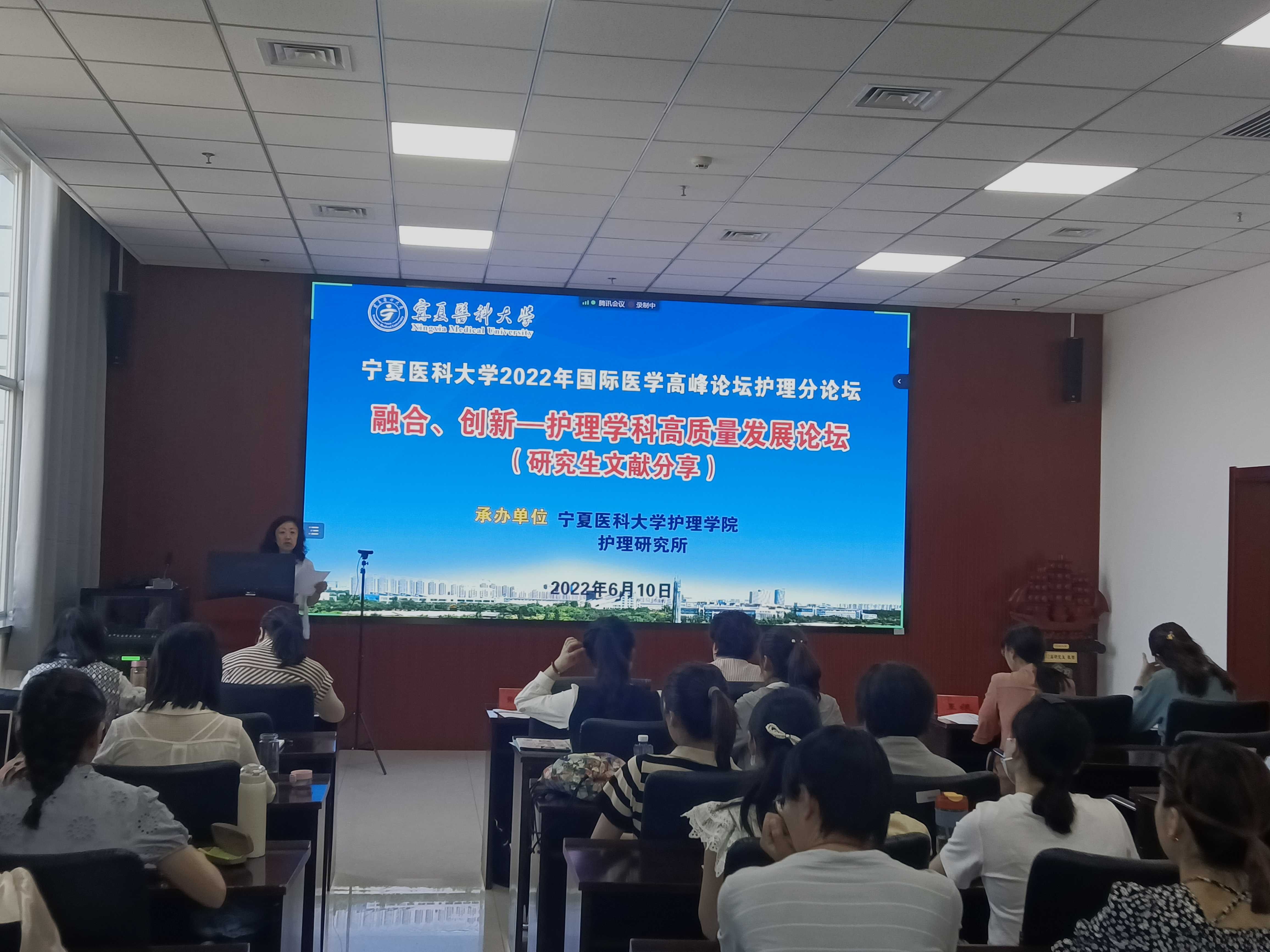 为促进研究生科研能力的提升,2022年6月10日上午护理学院在知行楼201学术报告厅举办“线上+线下”研究生文献分享会。本次文献分享活动邀请研究生院张琳娜副院长、教发中心李燕主任、基础医学院王银教授、公共卫生学院邱红燕副教授、李兆君副院长担任评委专家,学院研究生办杨夏丽主任主持,全体研究生参加。