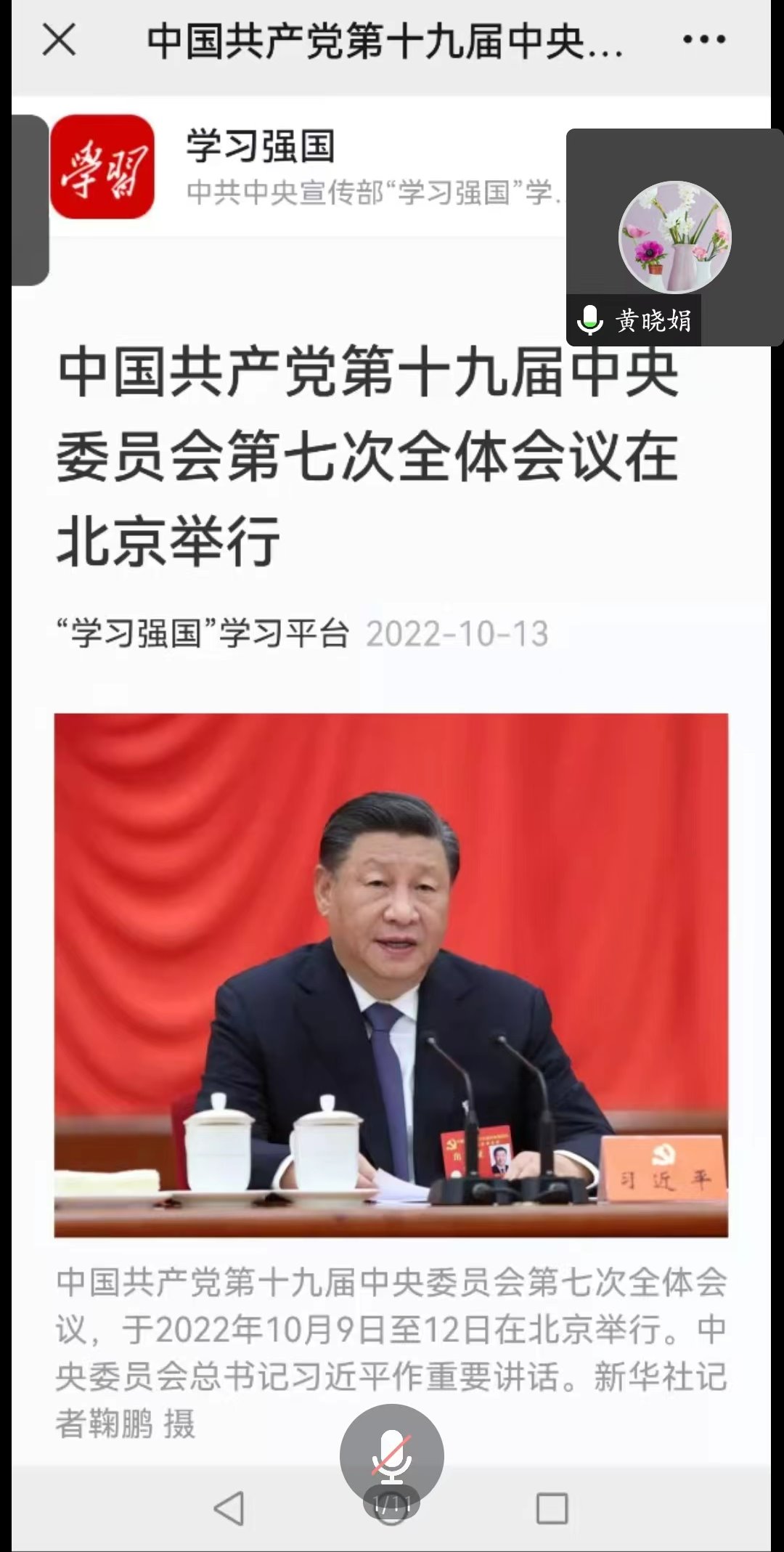 10月13日晚,护理学院研究生党支部线上集体学习党的十九届七中全会精神,全体党员和入党积极分子参加了此次学习。