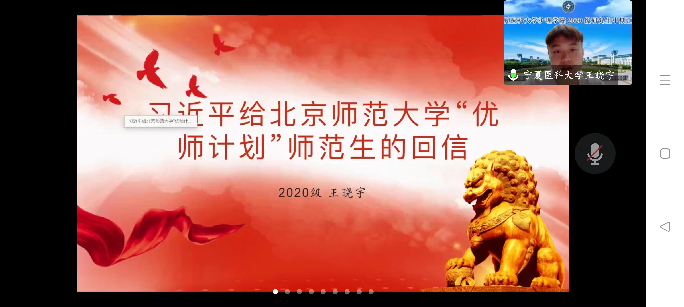 党支部书记黄晓娟带领同学们集体学习党的十九届七中全会公报,重温了党的十九大以来5年党和国家事业的重大成就,坚定全体研究生听党话、跟党走的信心。学生党员王晓宇和姜海昆分别围绕《习近平给北京师范大学“优师计划”师范生的回信》和《习近平:在复兴之路上坚定前行——< 复兴文库>序言》两个内容进行了学习。