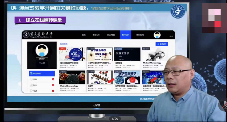 本次讲座邀请基础医学院病原生物学与医学免疫学系副主任王大军老师主讲。讲座围绕如何利用学校在线学习平台实施混合式教学及OBS studio在混合式教学中的使用进行了详细的讲解。王老师通过在线建立教学翻转课堂、混合式教学开展的关键性问题等方面进行了深入浅出的剖析,学院教师们聆听后,获益匪浅。