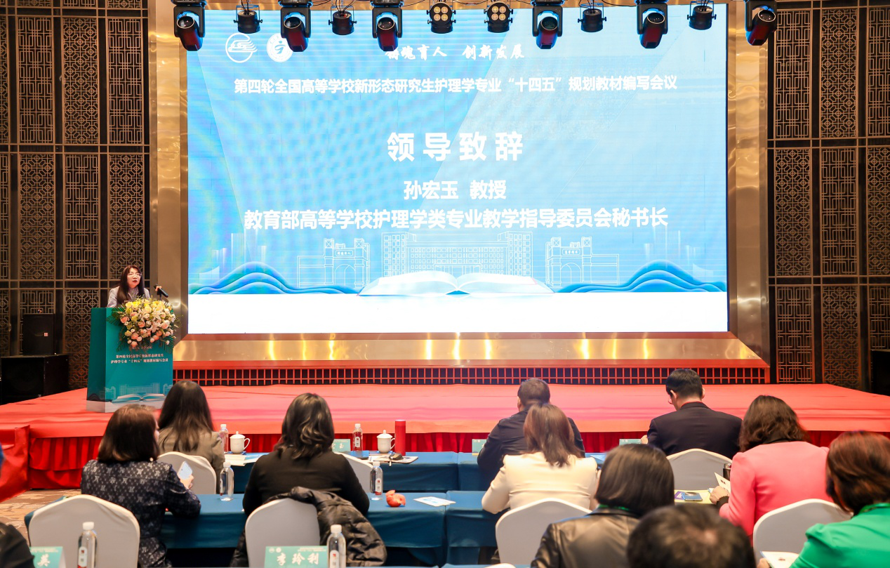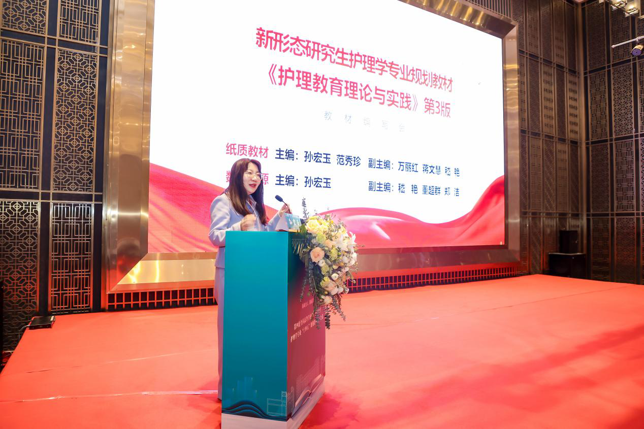 教育部高等学校护理学类专业教学指导委员会秘书长孙宏玉教授强调了教材编写对于人才培养、学科发展的重要性,指出本轮研究生规划教材要瞄准国家战略需求、服务人民健康需要,紧扣培养目标,体现学科特色,注重交叉融合,推进数字化融合,以提升护理学专业研究生教育质量、培养高层次护理创新人才为宗旨,并对各位主编、编委提出了希望和要求。