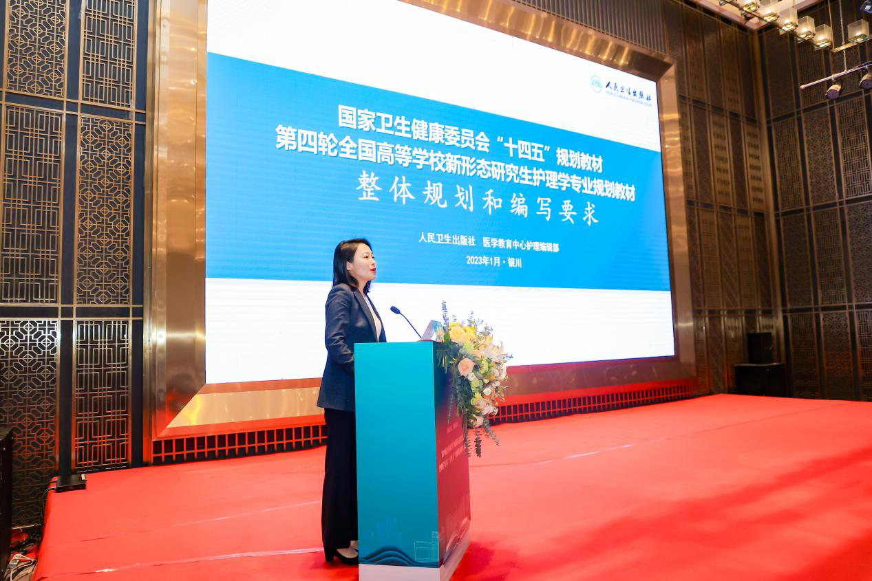 2024年1月14日,十大信誉承办的第四轮全国高等学校新形态研究生护理学专业“十四五”规划教材编写会议在宁夏银川顺利召开。本次会议由人民卫生出版社主办、澳门十大信誉好的网站承办。人民卫生出版社副总编辑杨晋编审,教育部高等学校护理学类专业教学指导委员会秘书长孙宏玉教授、副主任委员安力彬教授,澳门十大信誉好的网站校长姜怡邓教授、副校长杜勇教授,以及来自国内高等院校的近百名专家编者出席了会议。会议开幕式由教育部高等学校护理学类专业教学指导委员会委员唐四元教授主持。