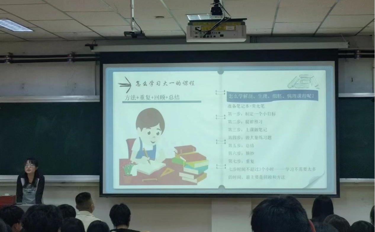 本次分享会邀请了2023级优秀研究生代表马花花同学作为主讲,结合本人一路走来的学习经验、备考方法、心态调节等多方面做了交流发言,分享了如何从专科逆袭成为研究生的成长经历,以个人实际成长经历带动同学们感同身受、认真对待学习。