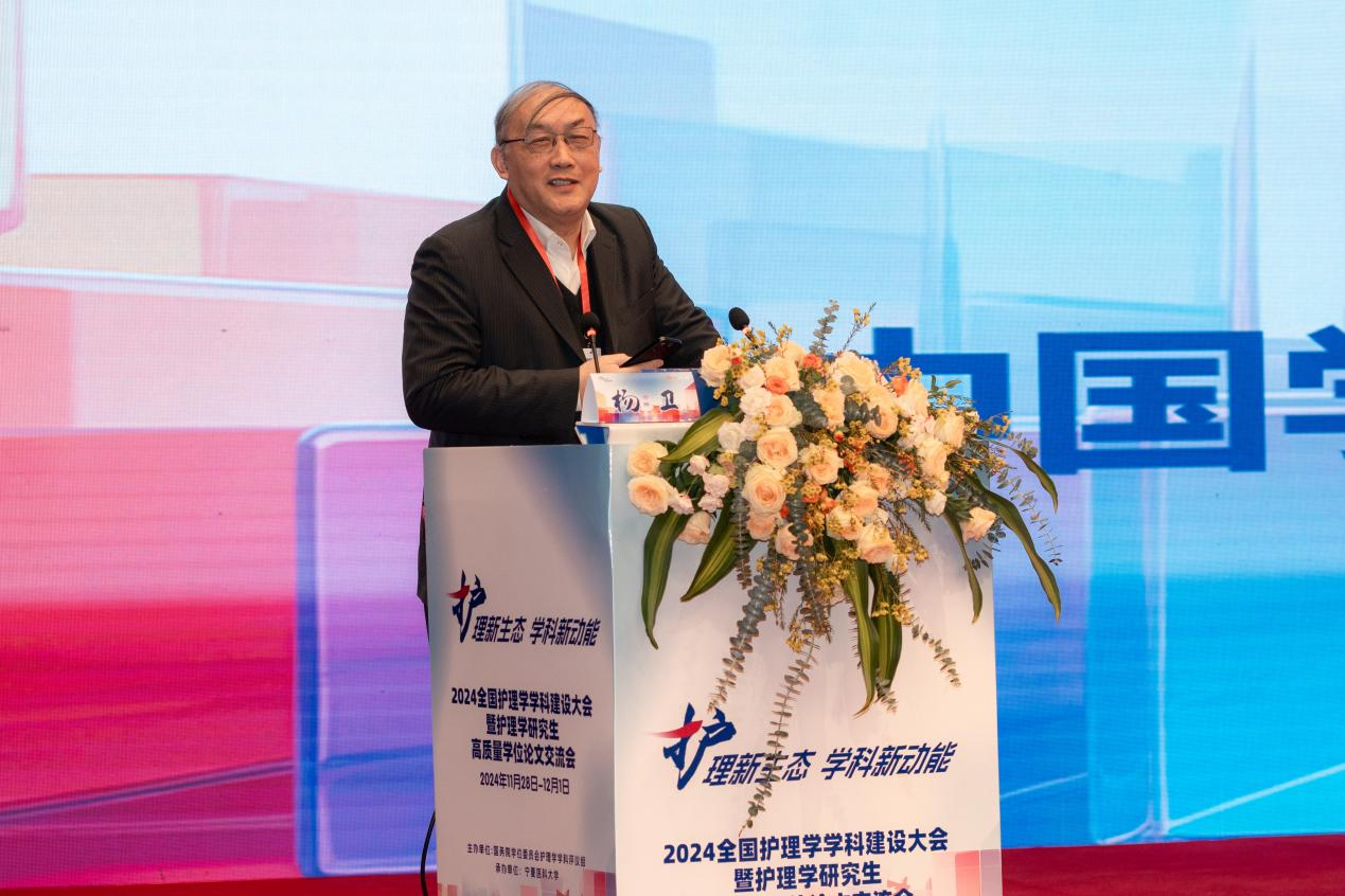 “跨界融合·创新引领——2024 全国护理学学科建设大会暨护理学研究生高质量学位论文交流会”于2024年11月28日至12月1日在悦海宾馆会议中心成功举办。本次会议由国务院学位委员会护理学学科评议组主办、护理学院承办,来自全国129所医学院校和11所医院的700余名护理学科及相关学科的领军人才、专家学者、研究生导师、研究生以及广大护理同仁齐聚塞上湖城,共襄盛会。充分彰显了专家学者们对积极探索多学科融合创新机制,构建护理学学科发展新格局,开展高水平科学研究和推动我国护理事业高质量发展的决心和热情。