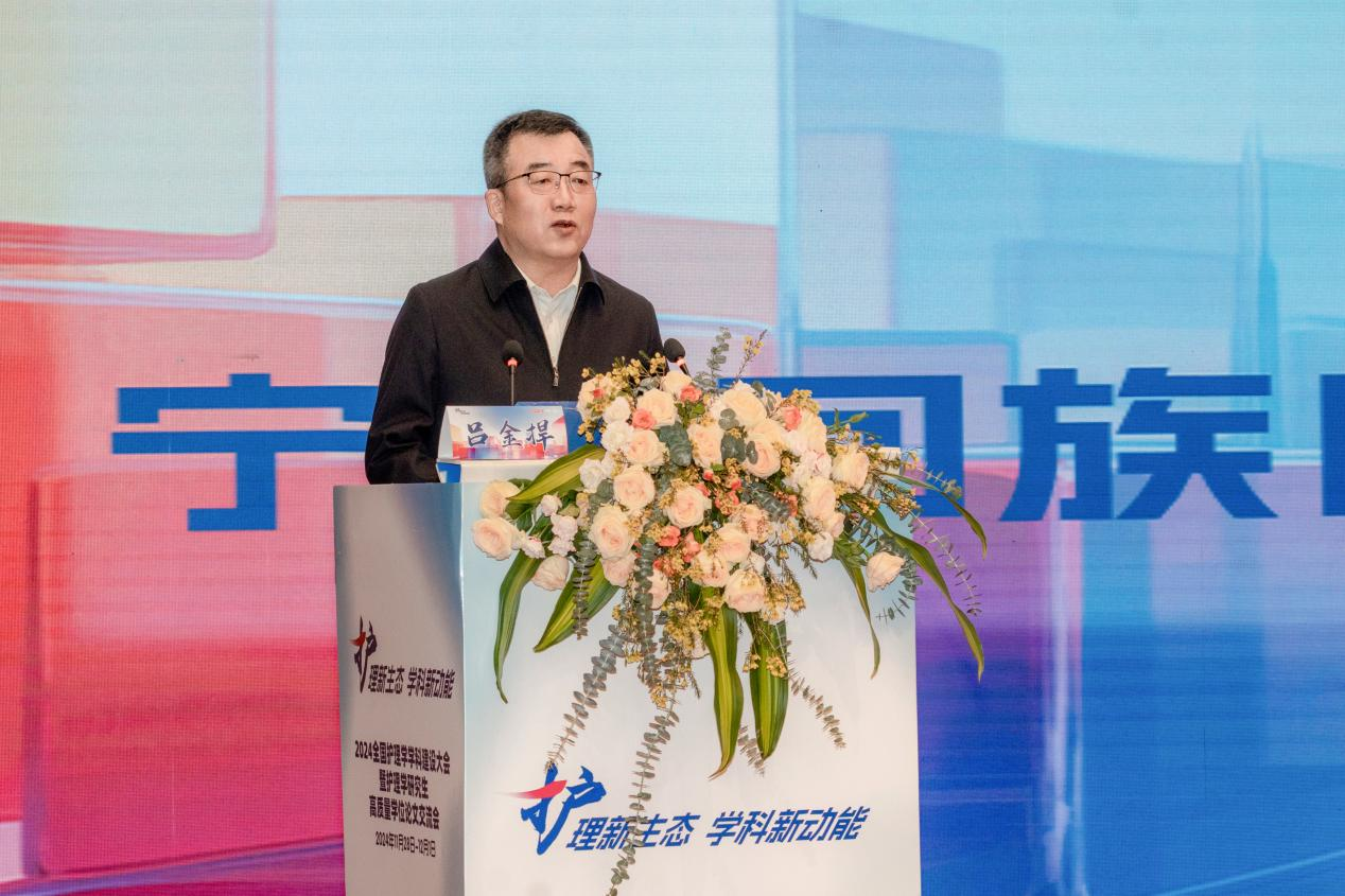 开幕式由护理学学科评议组召集人周兰姝教授和秘书长唐四元教授主持。护理学学科评议组召集人首都医科大学吴瑛教授代表主办方致开幕辞,并指出本次会议提供了交流探讨、思维碰撞的平台,为护理学学科的高质量发展和研究生高质量培养注入新的活力和动力,期待护理人共同为护理学事业的发展创造新的辉煌!校长姜怡邓教授代表承办方致欢迎辞,对本次大会在银川的顺利召开表示祝贺和感谢!学校将继续搭建国内外护理学科及相关领域专家学者们专业交流、学术共享的平台,尽力推进多学科交叉融合,助力护理学学科高质量发展。自治区卫生健康委员会党组书记、主任、中医药管理局局长吕金捍在致辞中提出卫健委将一如既往地创造条件助推护理学学科发展,努力培养更多具有国际视野、创新精神和实践能力的护理人才,努力全方位、全周期保障人民健康。中国科学院院士、中国学位与研究生教育学会会长杨卫讲话,他指出护理学的8个二级学科作为学科发展的“八柱”,还需要广大的护理学者寻找“四梁”来支撑和指引未来护理学学科的发展,并期望将来中国学位与研究生教育学会通过组织全国护理研究生竞赛来助力研究生教育。