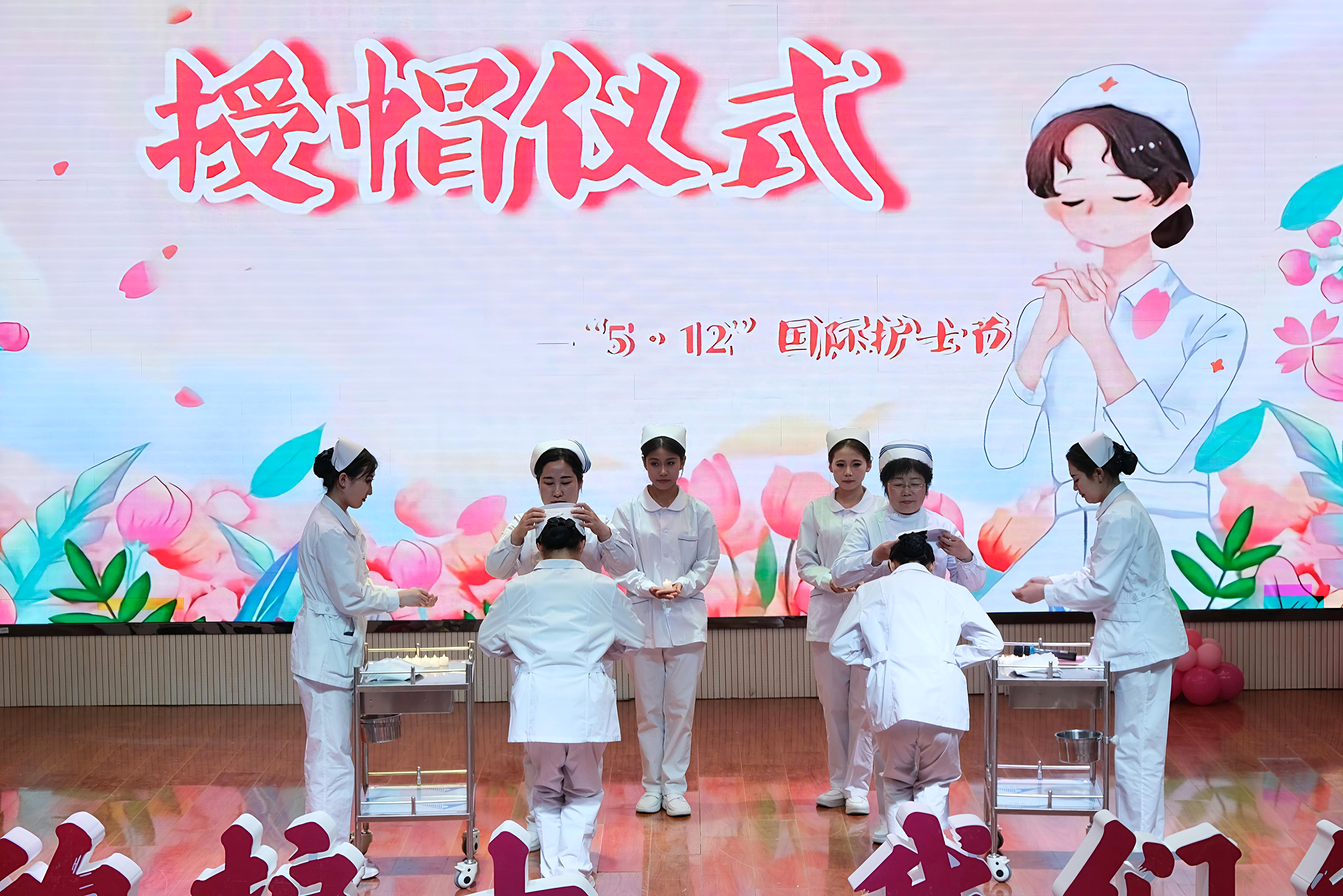 会上对护理学院2024至2025学年涌现出的先进集体、个人进行了表彰。在神圣的授帽仪式上,护理学院教师米光丽、刘晓慧为14名新护士戴上圣洁的燕帽。“作为新时代的护理学子,我们将以榜样为力量,用扎实的专业技能、温暖的人文关怀,践行南丁格尔誓言,在守护人民健康的道路上绽放青春光彩!”澳门十大信誉好的网站护理学院本科生杜宁娟说出了学子们的心声。