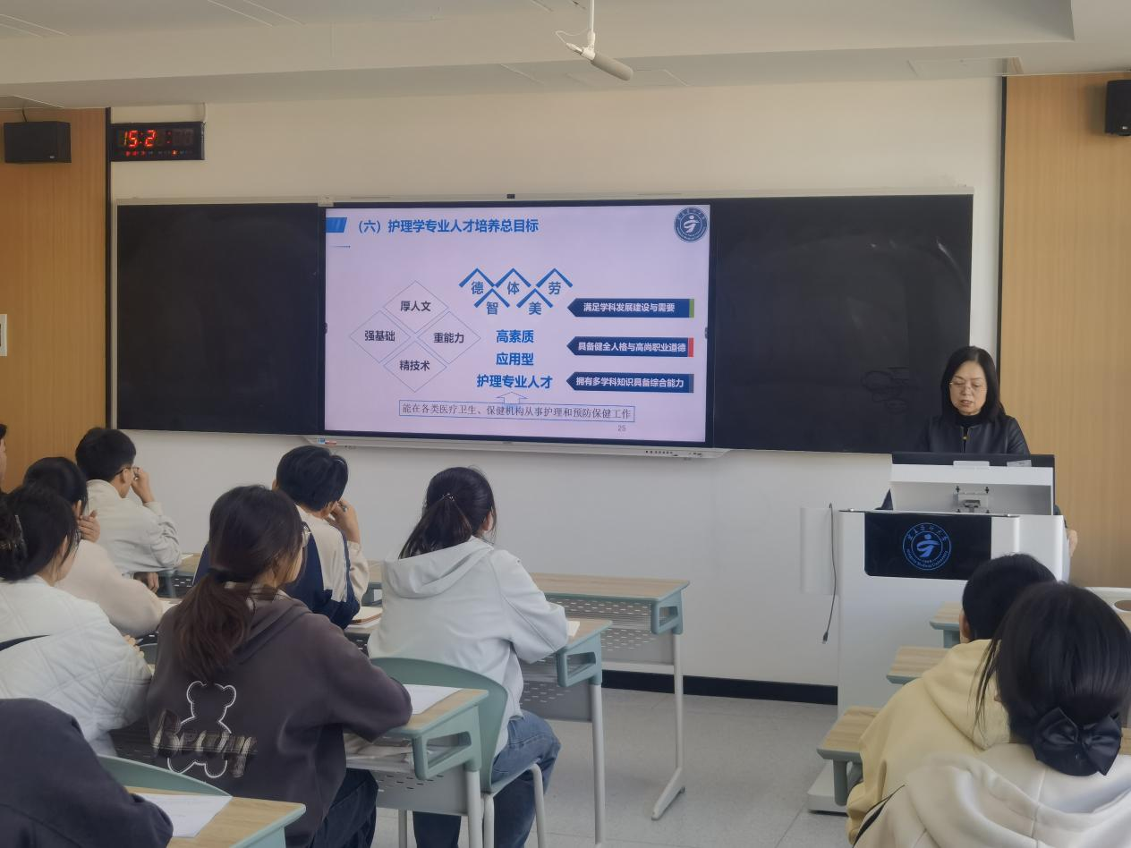 辅导会上,刘国莲教授怀着对学院与护理专业的深厚情感,系统梳理了护理学专业认证的基本知识,阐明了认证的重要意义。她结合学校的历史沿革与发展概况,详细介绍了护理学院的办学特色、师资力量以及护理学专业的人才培养目标与课程体系。刘国莲教授通过生动的实例,将严谨的专业知识转化为易于理解的内容,引导同学们深刻理解认证内涵,现场气氛温馨而热烈。