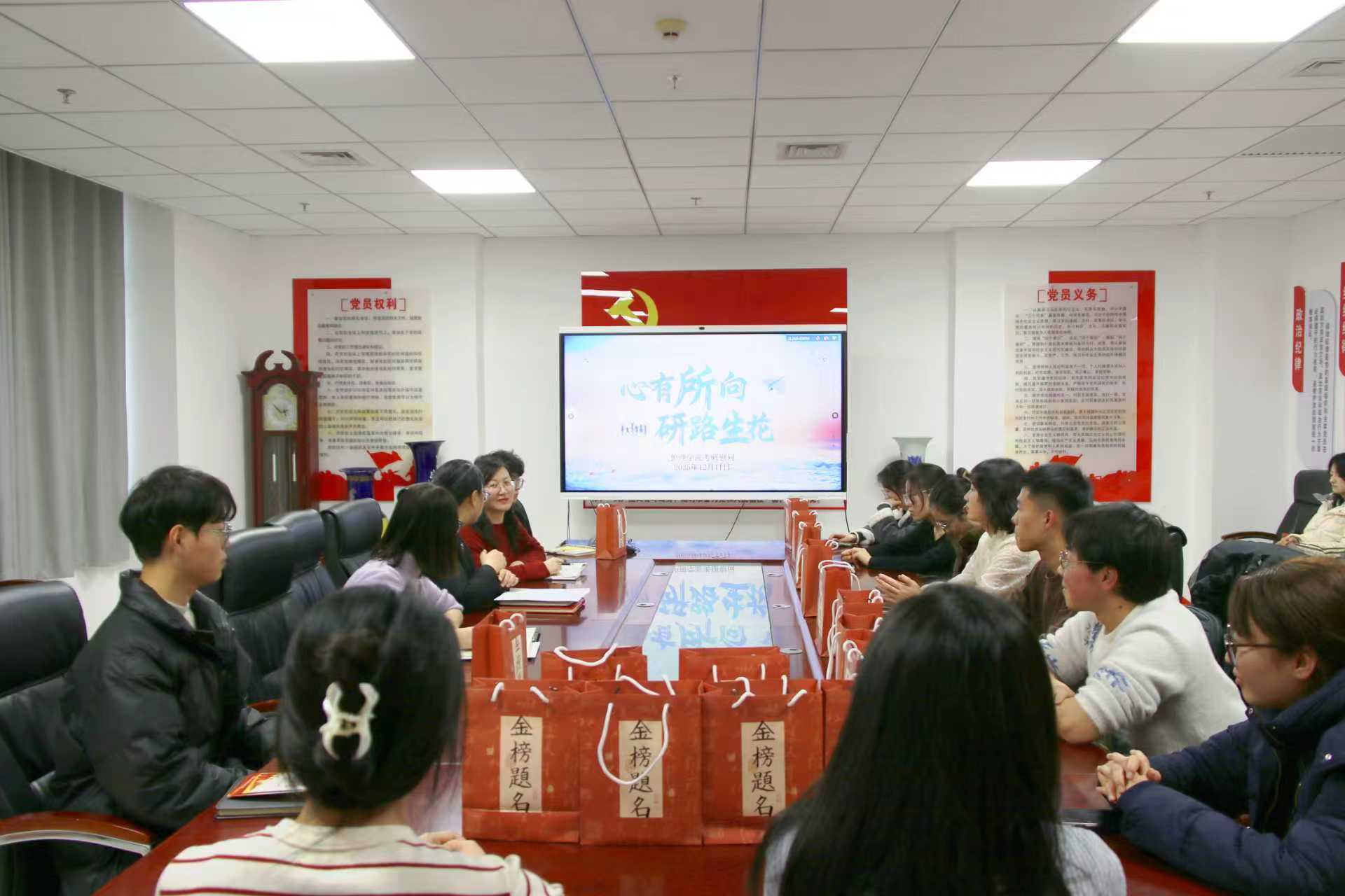 12月11日,护理学院雁湖校区知行楼605开展“心有所向·研路生花” 考研慰问活动。学院领导与毕业班辅导员为2022级考研学子送上温暖关怀与诚挚祝福。