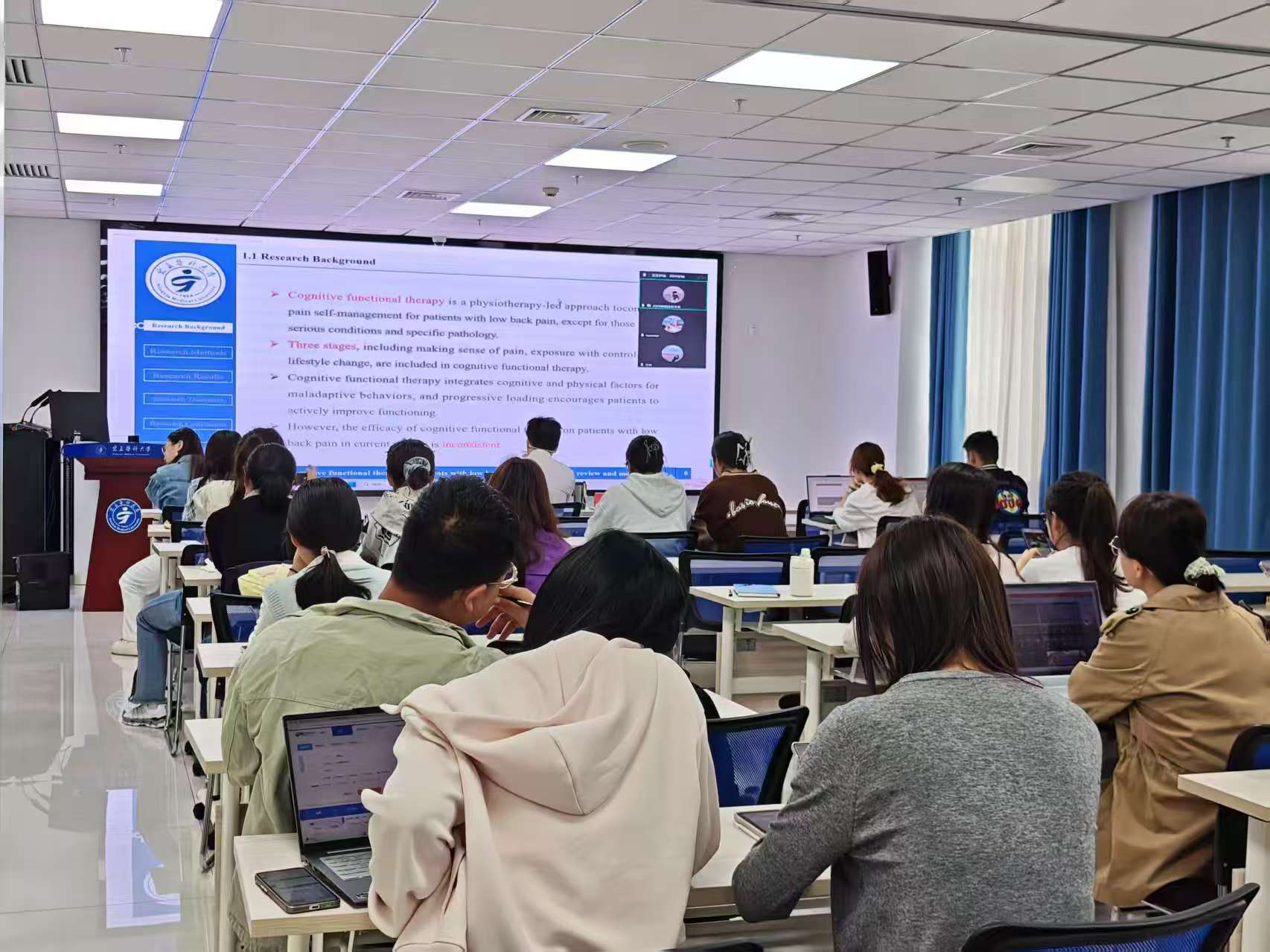 第一位汇报者是2024级专业型硕士研究生安琪,她汇报的文章发表在《International Journal of Nursing Studies》期刊,影响因子为8.1(中科院1区),题为“Efficacy of cognitive functional therapy in patients with low back pain: A systematic review and meta-analysis”。研究系统评价认知功能疗法对慢性腰痛患者的疼痛缓解和功能改善效果,揭示该疗法在减少医疗资源消耗方面的潜在价值。其整合心理学与康复医学的跨学科视角,为基层医疗机构提供低成本、高可行性的疼痛管理方案,对优化慢性病护理策略具有重要参考意义。