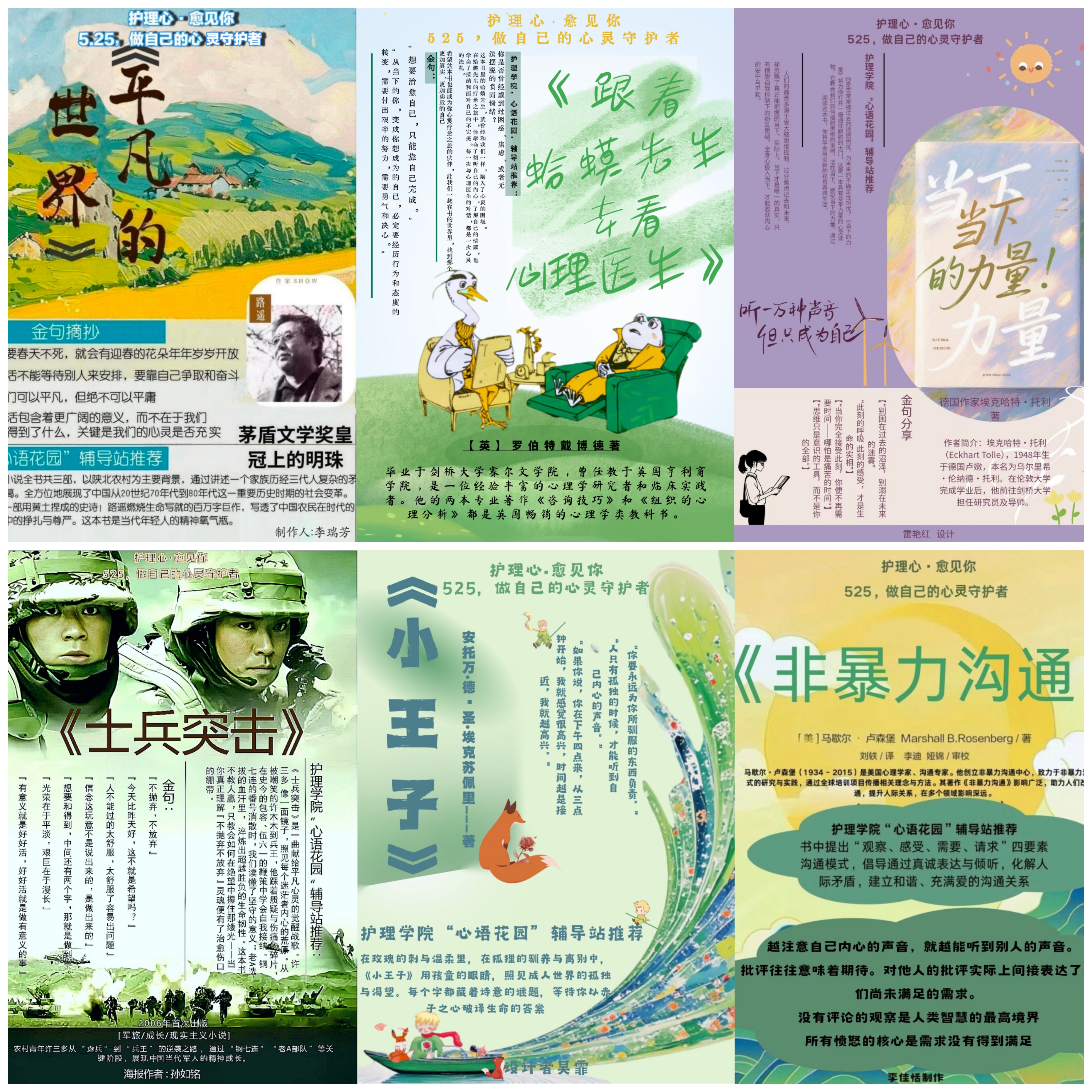 5月23日至6月30日,护理学院开展"墨香润心"读书笔记大赛,同学们积极参与,围绕《跟着蛤蟆先生去看心理医生》《非暴力沟通》《当下的力量》《小王子》《平凡的世界》《士兵突击》6本心理治愈进行了沉浸式阅读和创意性设计,有的同学以思维导图梳理阅读书目的逻辑脉络,有的同学用摘抄批注记录思想火花,有的同学借读书心得倾诉内心感悟,有的同学更以绘画形式解构文本意境。这些融合个人经历与专业学习的读书笔记,不仅是知识内化的载体,更成为了驱散心绪阴霾的媒介。