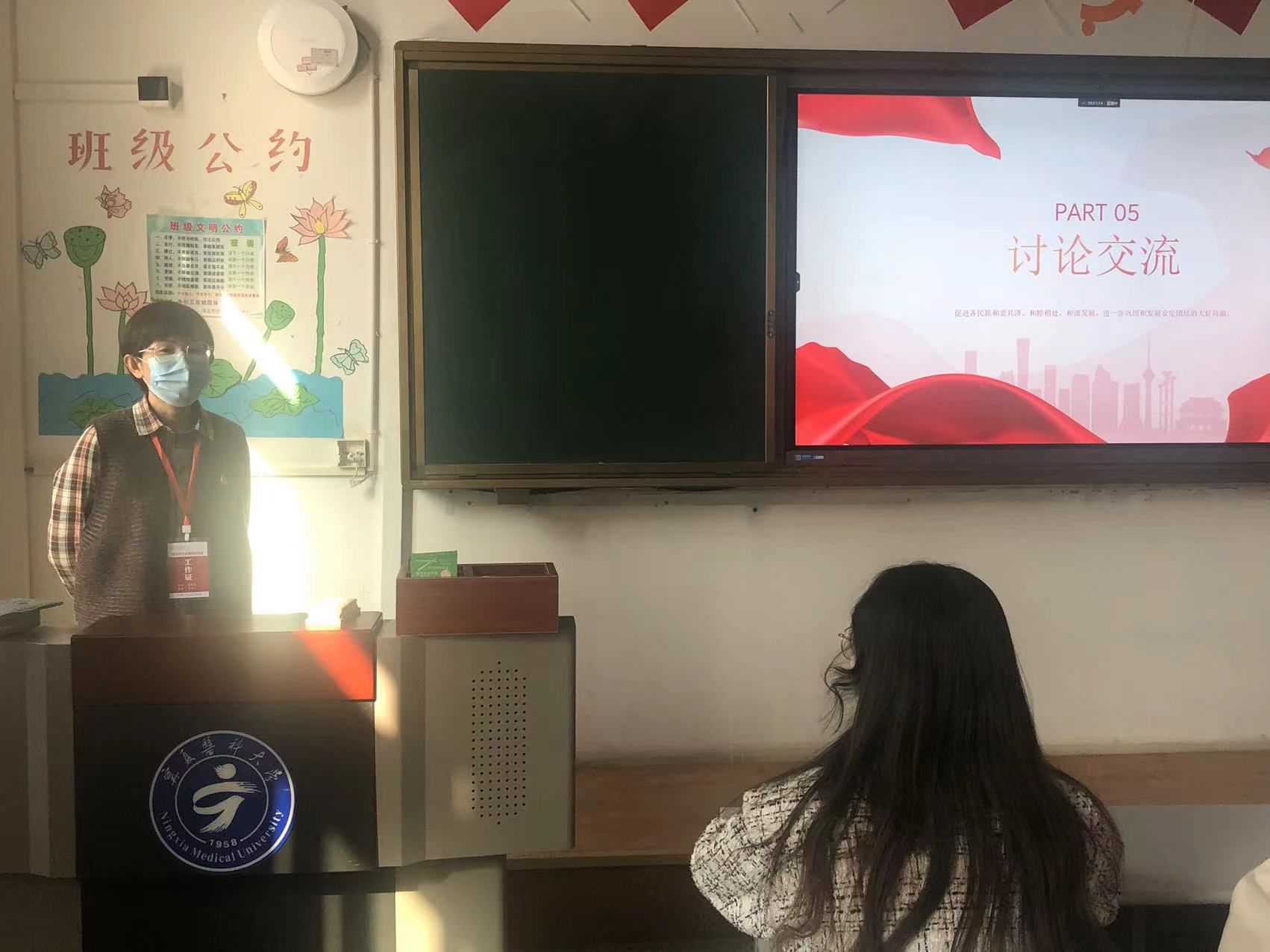 学院党委副书记张英浩以双怡校区疫情防控专班工作人员和高职护理5班联系处级干部的双重身份,和新生辅导员一同,参加了同学们的主题班会。张英浩在讨论环节,结合当前疫情防控形势的严峻与复杂,向同学们讲解了党的二十大胜利召开的时代背景与意义,督促同学们要时刻心系祖国、勤奋学习,秉持护理专业的职业操守,用理想指引人生方向,与祖国同频共振,以吾辈之青春护卫盛世之中华。