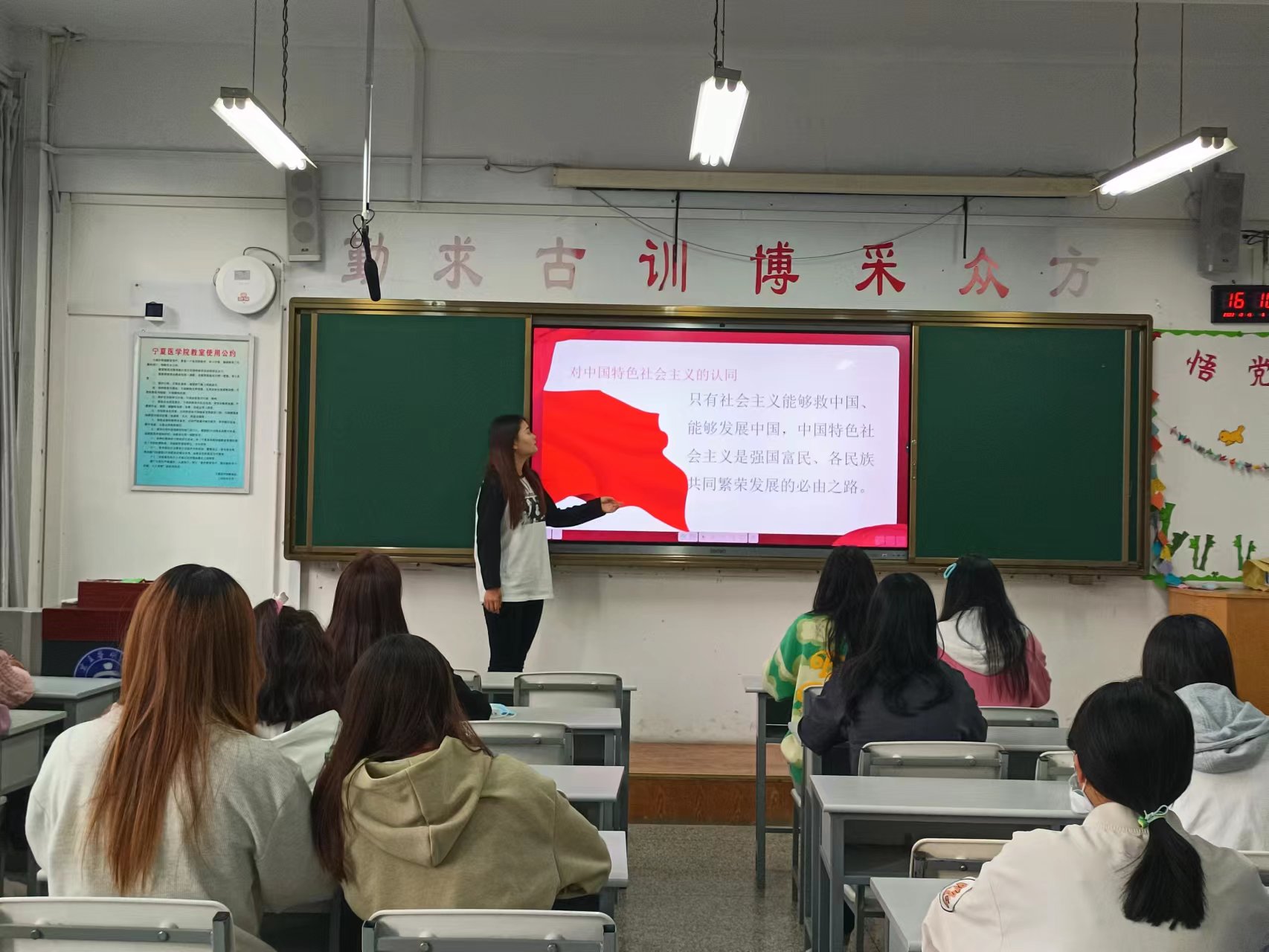 2022级高职护理6个班在双怡校区共254人,在校园全封闭管理期,各班利用课余时间,热情邀请联系班级的处级干部,在居家时间云端参与主题班会。师生同讲革命故事、温习理论知识,并通过视频再现、影片回顾、班级讨论等环节,强化主题班会学习内容。不断强化广大护生对祖国、对民族、对文化、对中国共产党、对中国特色社会主义的强烈认同,让同学们深刻体会到中国梦与青年梦的同向同行。