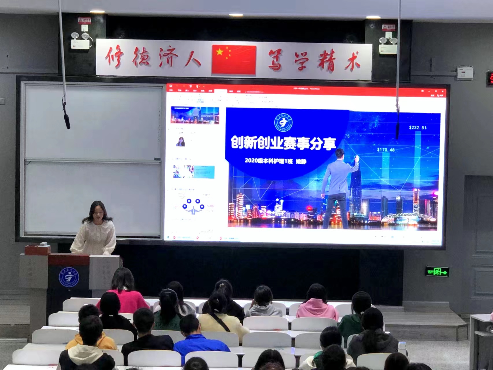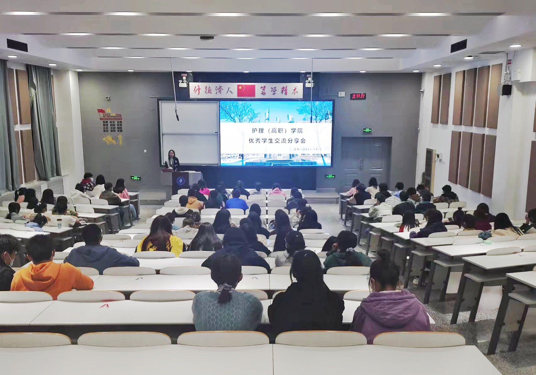10月7日,护理学院在雁湖校区举办优秀学生成长经验分享会,驻校辅导员和2022级全体本科新生参会。