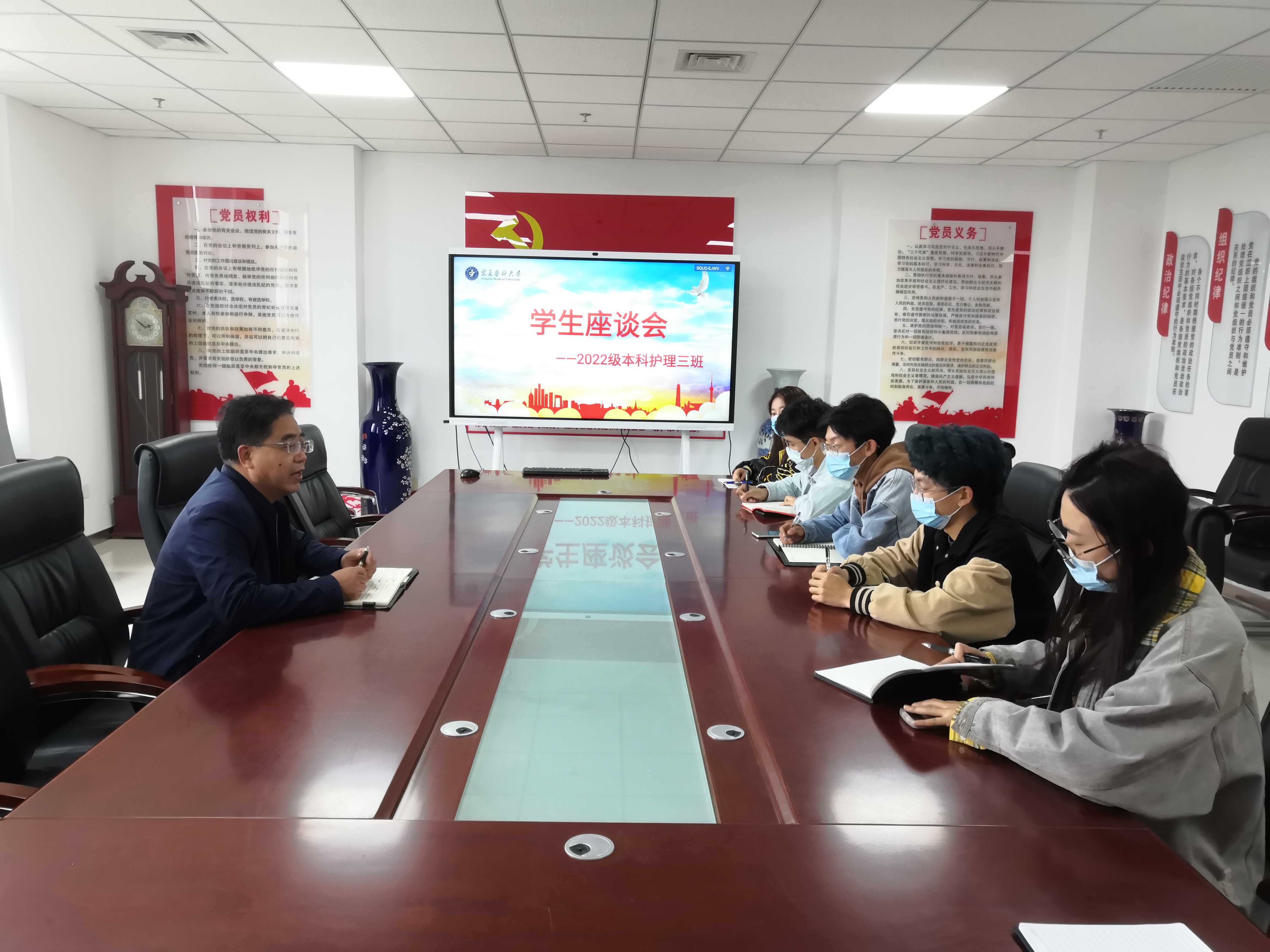 为落实领导干部“七进一交友”工作,10月5日,护理学院党委书记司琼辉召开联系班级学生座谈会,2022级本科护理3班全体班委及新校区值班辅导员参加会议。