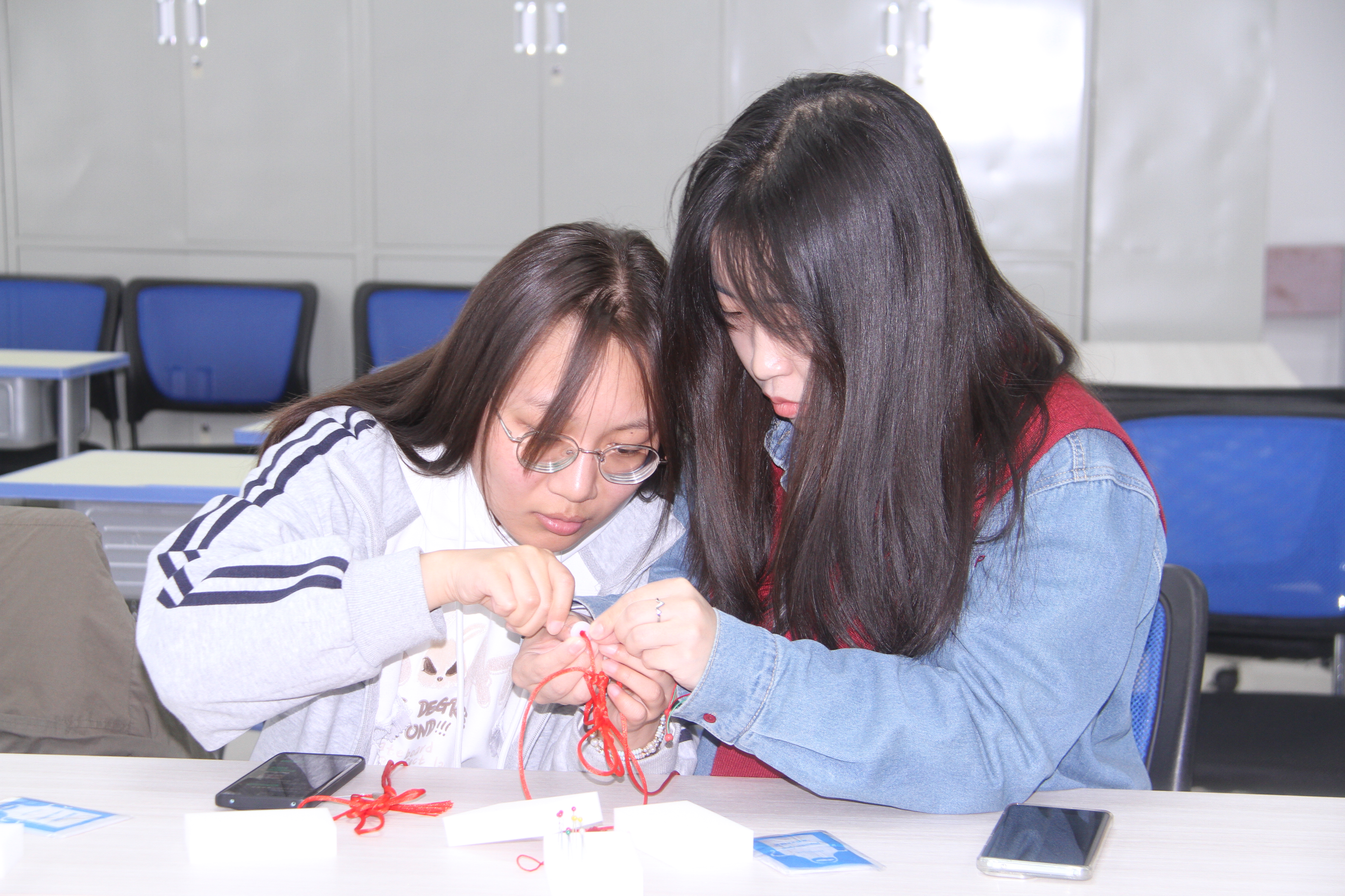 在实践环节中,同学们在欢声笑语中体验了中国结、扎染作品以及漆扇等非遗项目。大家在制作过程中相互交流、相互学习,在合作中加深了对民族文化的理解与认同。