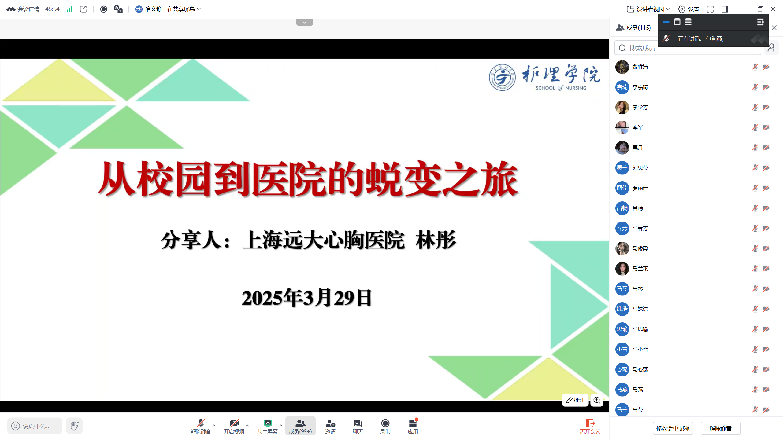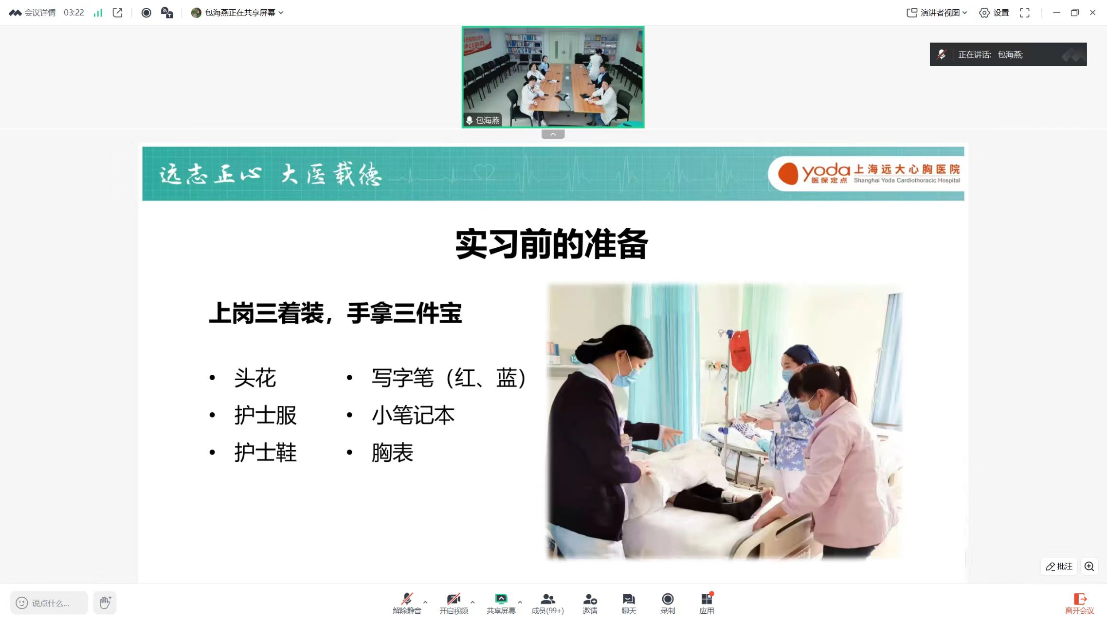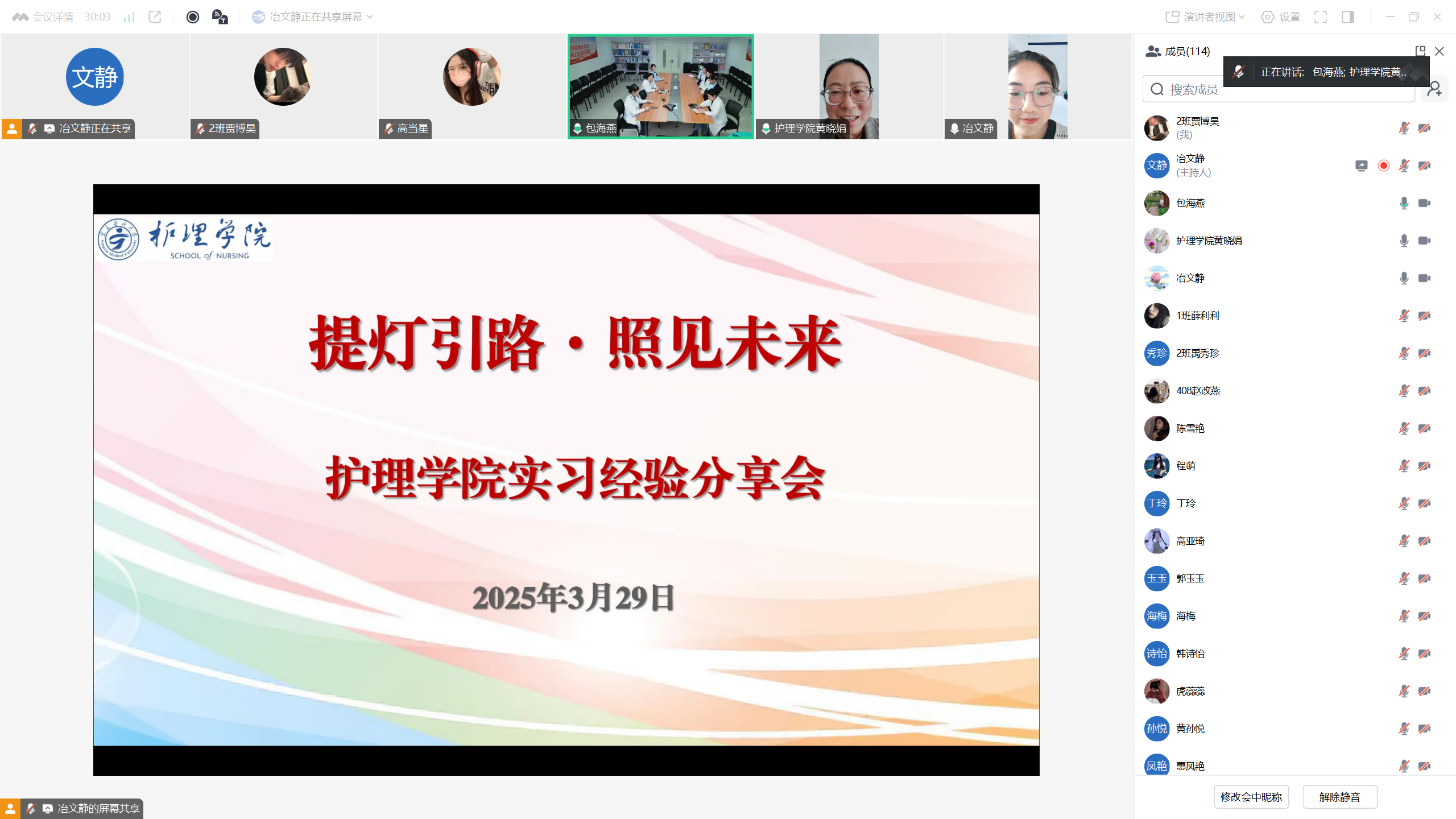 3月29日下午,学院召开了以“提灯引路・照见未来”为主题的实习经验线上分享会。上海远大心胸医院相关部门负责人,学院学办工作人员,2023级高职护理年级共140余人参会。