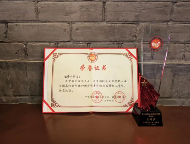 2023年4月20-24日由中华全国总工会和教育部联合主办的第六届全国高校青年教师教学竞赛在清华大学举办,来自31个省(区、市)和新疆生产建设兵团121所学校的158名选手参加决赛,我院选送的教师张梦钰获医科组三等奖。