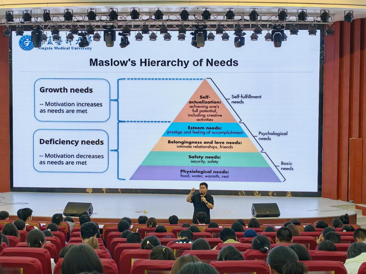 Secretary Ma Yulong addressed the freshman class. He encouraged them to uphold their ideals, remain open-mind and build resilient. Additionally, he emphasized the importance of setting early academic goals and enriching their inner world through reading. Dean Liu Minhui spoke on nursing career planning, outlining the industry’s development and the key skills required at different academic levels to help students set clear goals. He also shared his personal motivation for returning to China: to advance geriatric care. His speech served as a call for students to cultivate persistence, strategic thinking, and gratitude to become future scientists, leaders, or educators in the field.