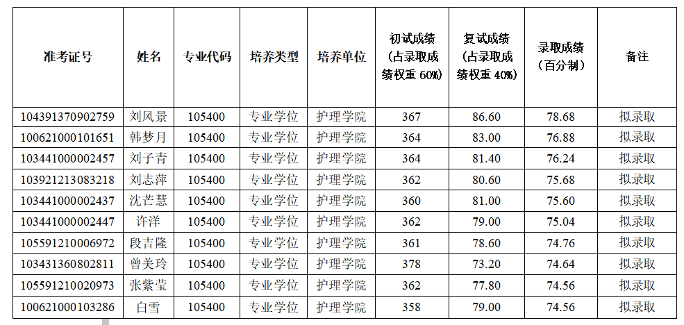 澳门十大信誉好的网站护理学院关于2021年硕士研究生招生调剂考生进入复试名单的通知
