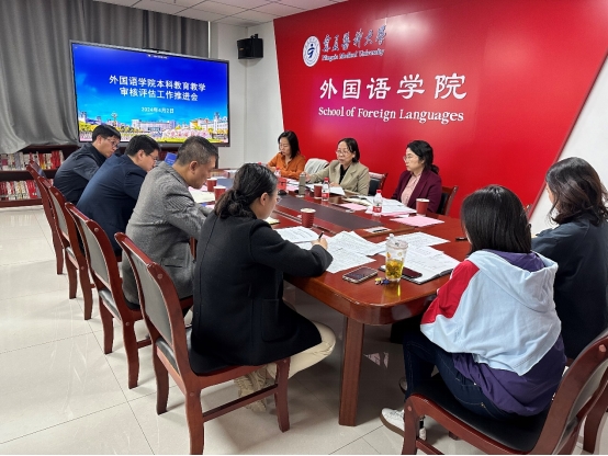 座谈交流会上,外国语学院结合本科教育教学审核评估工作中的指标体系与审核重点,围绕学生英语学习学情分析、课程思政建设情况、学院审核评估工作推进情况及存在问题进行了汇报。