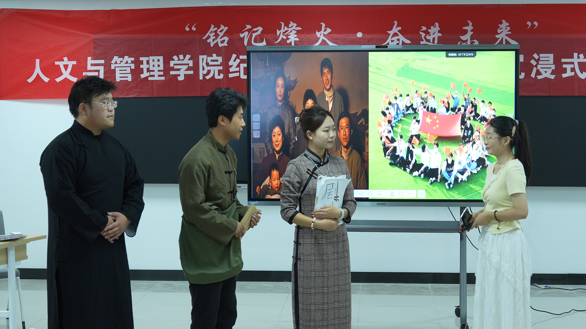 9月3日下午,学院在臻善楼多功能室开展“铭记烽火·奋进未来”纪念中国人民抗日战争暨世界反法西斯战争胜利80周年沉浸式主题党日。学院党委领导班子成员,教工党支部、学生党支部全体党员参加。