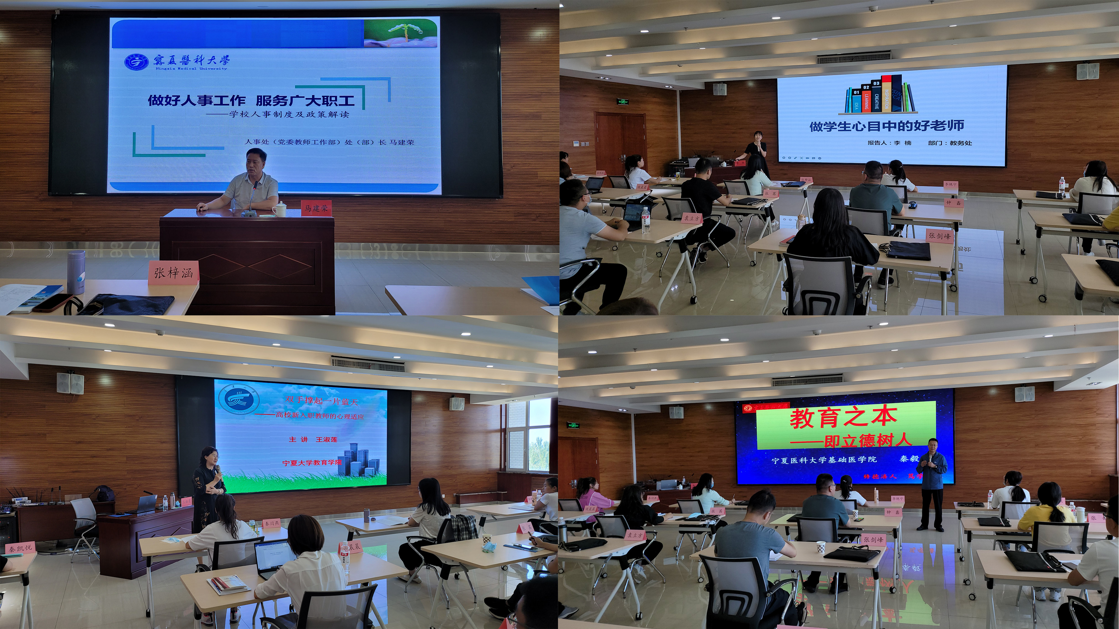 在教育教学能力培训中,教师教学发展中心主任李燕为大家讲授了《基于智慧教学的课程思政课堂教学设计》;学生处(学生工作部)副处长李亚红以《坚持立德树人,做一名新时代引路人》为题,就如何做好辅导员进行了专题辅导;教务处副处长李楠就如何“做学生心目中的好老师”讲授了经验。