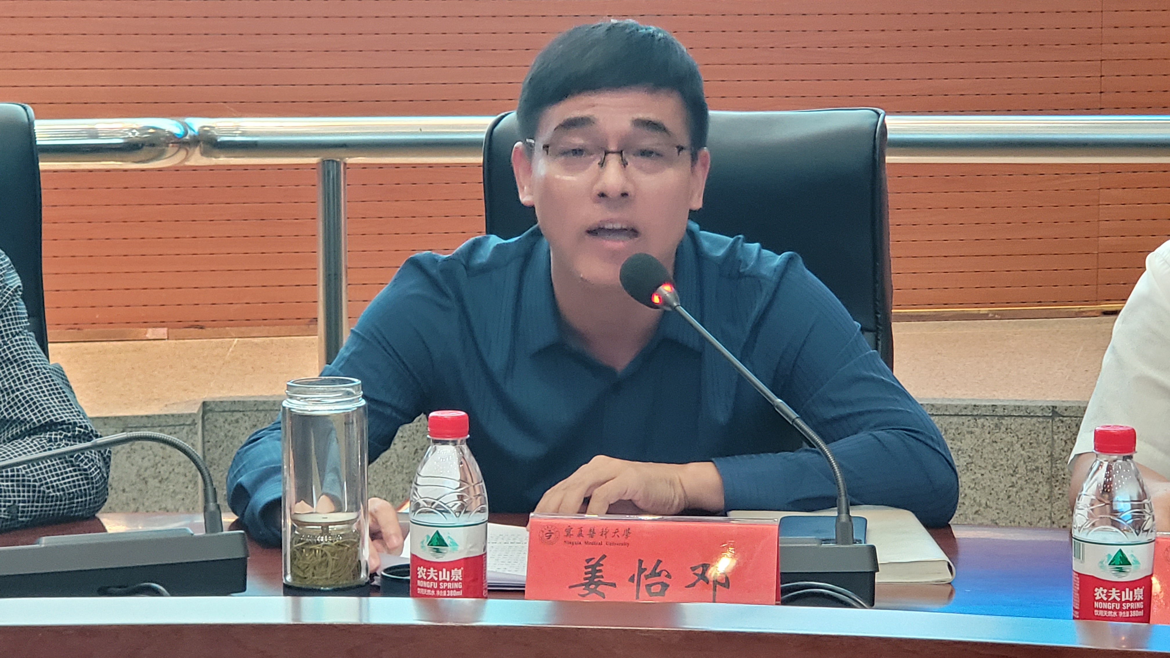 培训班结业式上,校领导及部分学院处室领导与新职工面对面交流,并与新职工齐唱校歌《白衣天使的摇篮》。新职工逐一进行了自我介绍。随后马林书记和姜怡邓校长为新进教职工代表赠送了校徽。新职工集体进行了入职宣誓。最后,马林书记从落实党的政策方针,坚持立德树人,立足岗位教书育人三个方面进行了重要讲话,体现出学校党委对此次培训工作的重视,表现出校领导对新职工给予的深切厚望,希望各位新职工认真工作,勤奋踏实,为实现教师的理想与追求而不断努力。姜怡邓校长从正己修身,立德树人;脚踏实地,成长成才;追求卓越,勇于创新三个方面作了重要讲话,不仅为新职工带来了充满生机与希望的宁医未来,也给新职工即将开始人生新的征途指明了方向,可谓情真意切、语重心长。朱建华副书记从坚定理想信念,忠诚党的培养,做“四有”好老师三个方面提出了具体要求。
