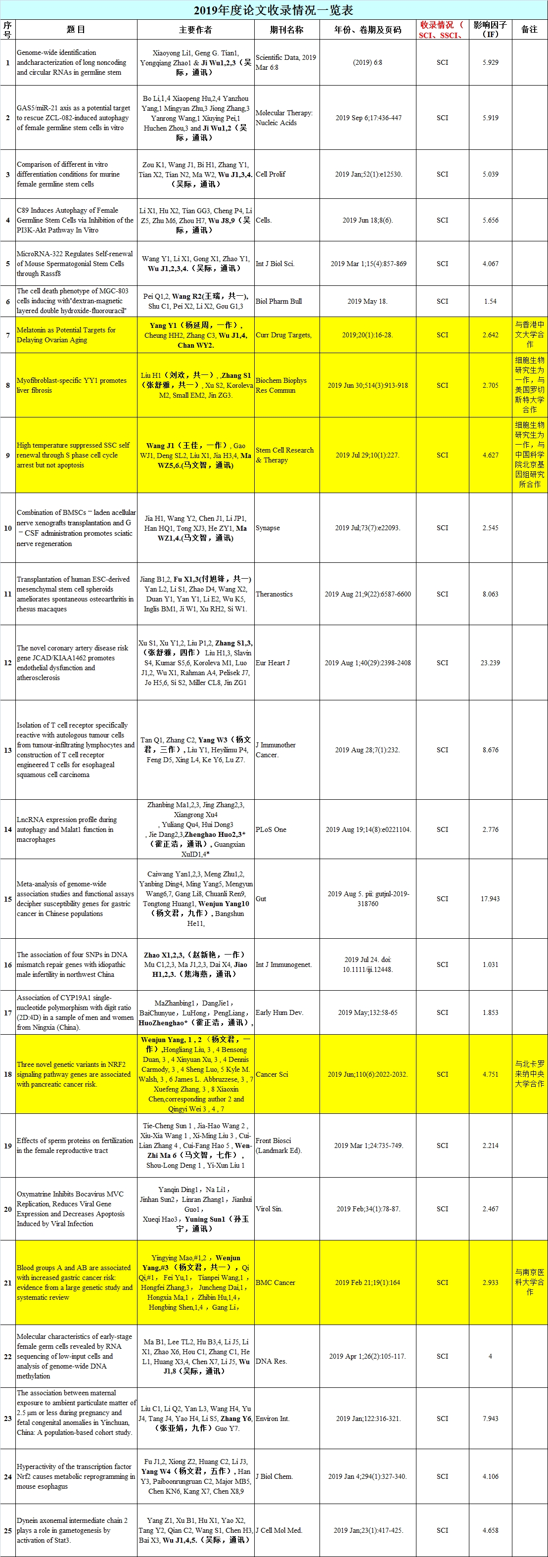 2019年发表SCI论文
