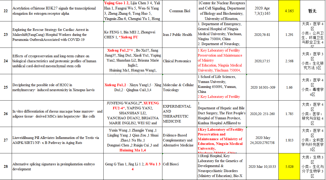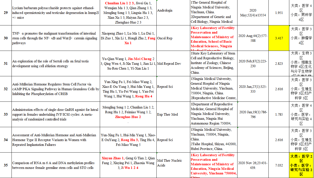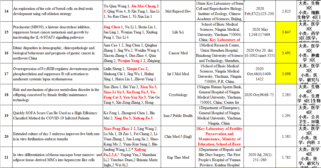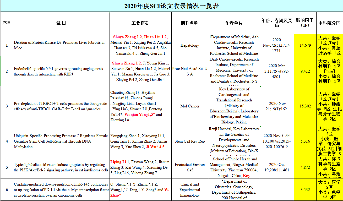 2020年度SCI论文收录情况一览表