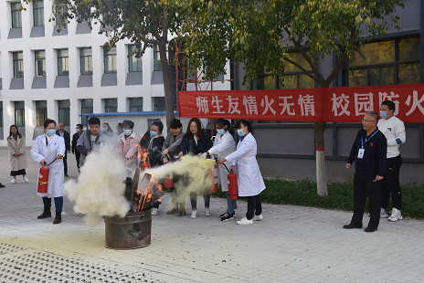 在全员撤离到安全地带后,学校保卫处和学校应急处置分队继续给全体师生演示灭火器、消防水带等消防设备的使用方法,指导师生们进行了实际操作。