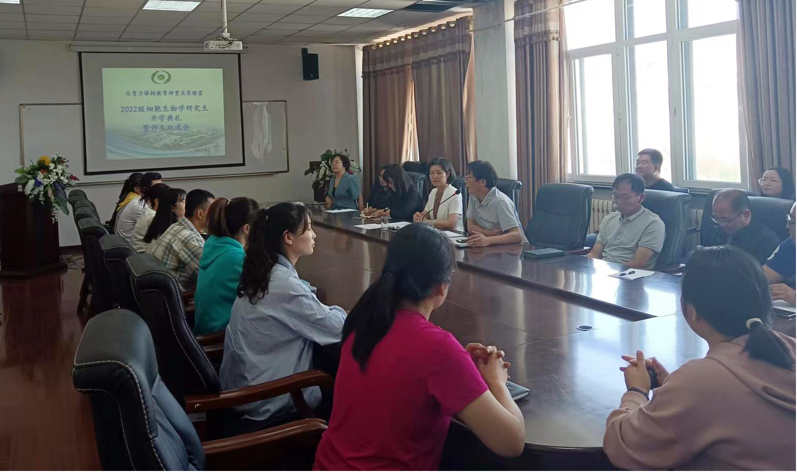 9月7日上午,生育力保持教育部重点实验室在科技楼四楼会议室举行2022级硕士研究生开学典礼。生育力保持重点实验室常务副主任裴秀英教授、副主任常青教授、全体导师和研究生共约30余人参加了此次开学典礼。