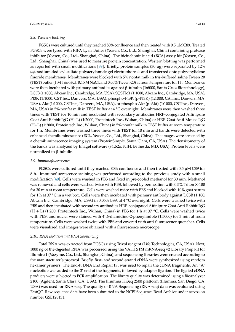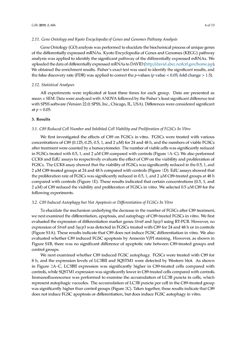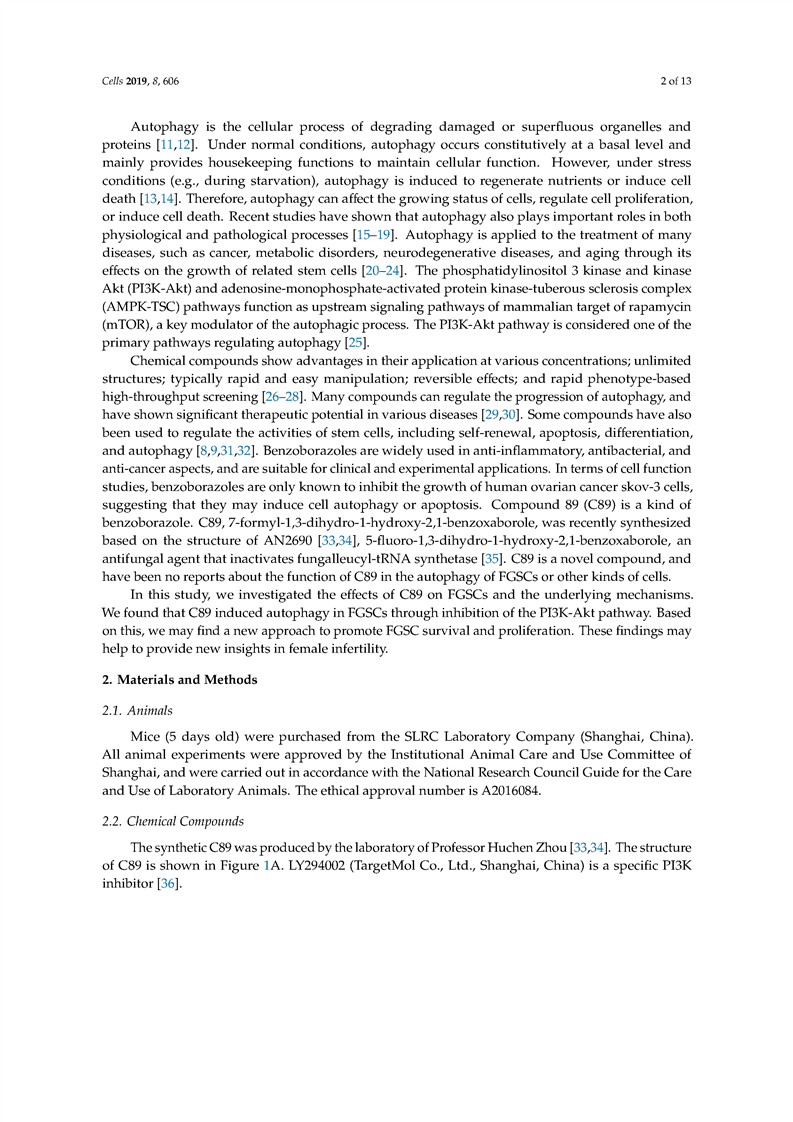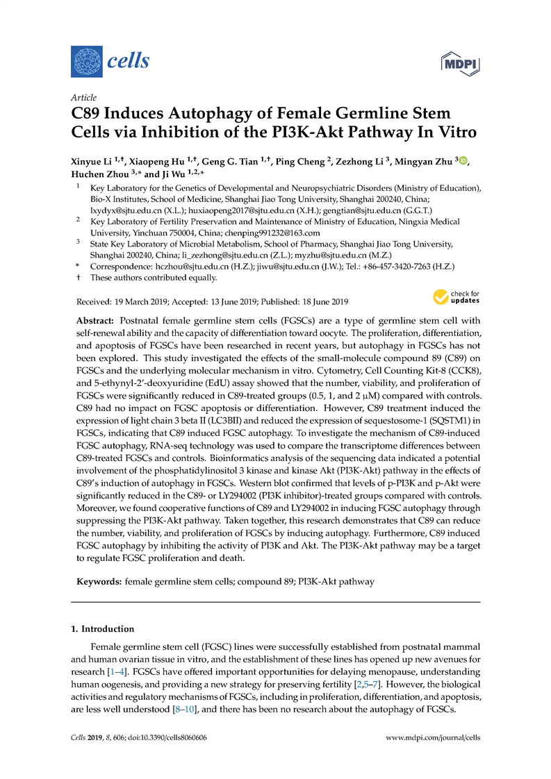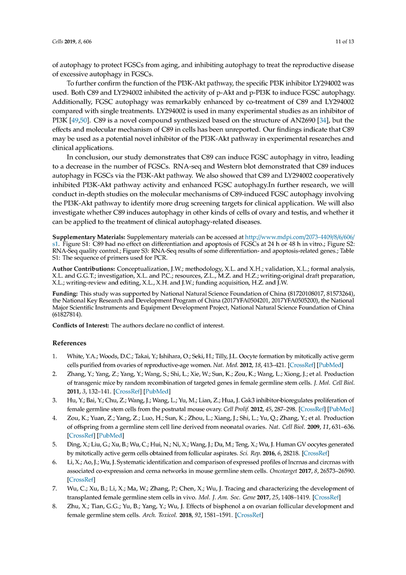 吴际-C89 Induces Autophagy of Female Germline Stem Cells via Inhibition of the PI3K-Akt Pathway In Vitro