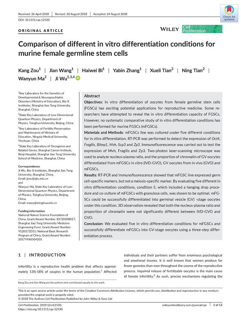 吴际-Comparison of different in vitro differentiation conditions for murine female germline stem cells