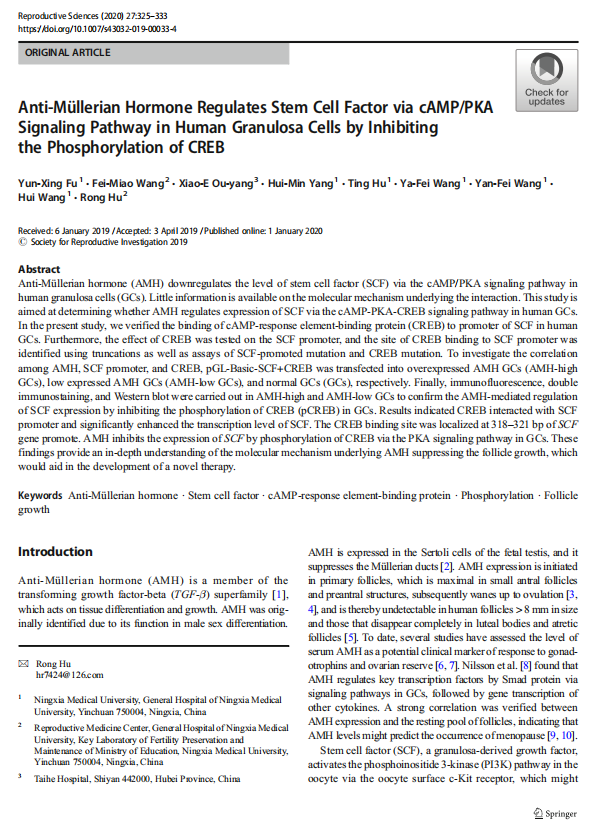 Anti-Müllerian Hormone Regulates Stem Cell Factor via cAMP/PKA Signaling Pathway in Human Granulosa Cells by Inhibiting the Phosphorylation of CREB