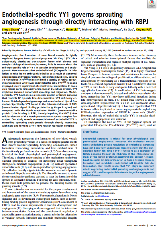 Endothelial-specific YY1 governs sprouting angiogenesis through directly interacting with RBPJ