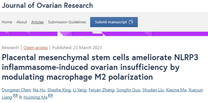 马会明等人在《Journal of Ovarian Research》上发表题为“Placental mesenchymal stem cells ameliorate NLRP3 inflammasome-induced ovarian insufficiency by modulating macrophage M2 polarization”的论文。