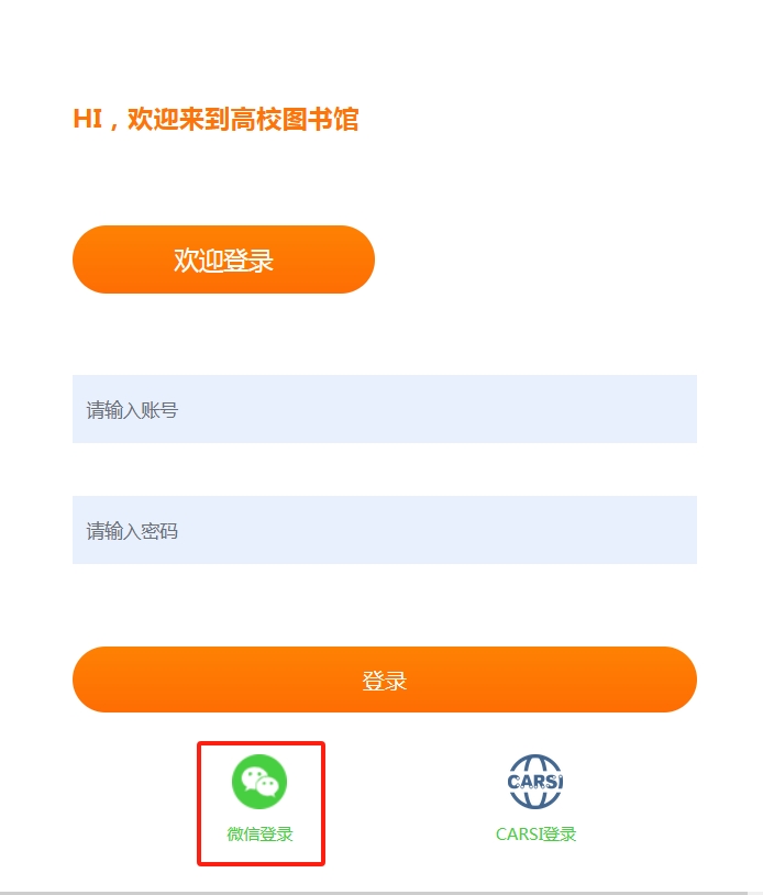 1)点击网站首页右上角【校外访问】”→选择“微信登录”扫码登录;(操作须在校园网IP范围内)