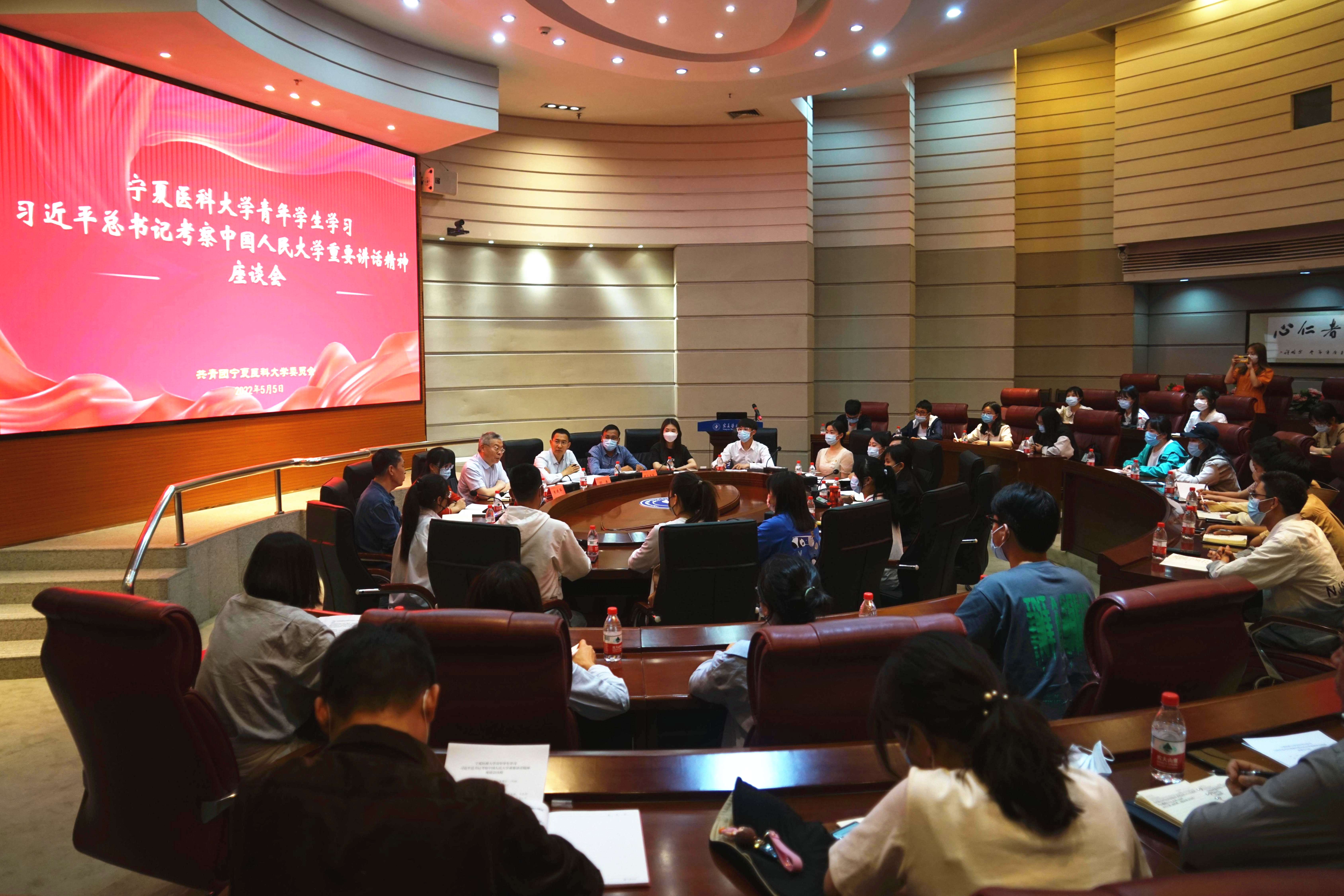 团委副书记刘河涛说到,各级团学组织及广大团员青年要把学习习近平总书记考察中国人民大学重要讲话精神作为当前和今后一个时期的重要政治任务,把总书记重要讲话精神学深悟透、入脑入心、学思用贯通、知信行统一,修仁心、炼仁术、献仁爱,以饱满的热情为人民的生命安全和身体健康接续奋斗,争做医学发展的复兴栋梁,践行“请党放心、强国有我”的青春誓言,在实现中华民族伟大复兴的时代洪流中砥砺奋发、勇毅前行,以实际行动迎接党的二十大胜利召开。