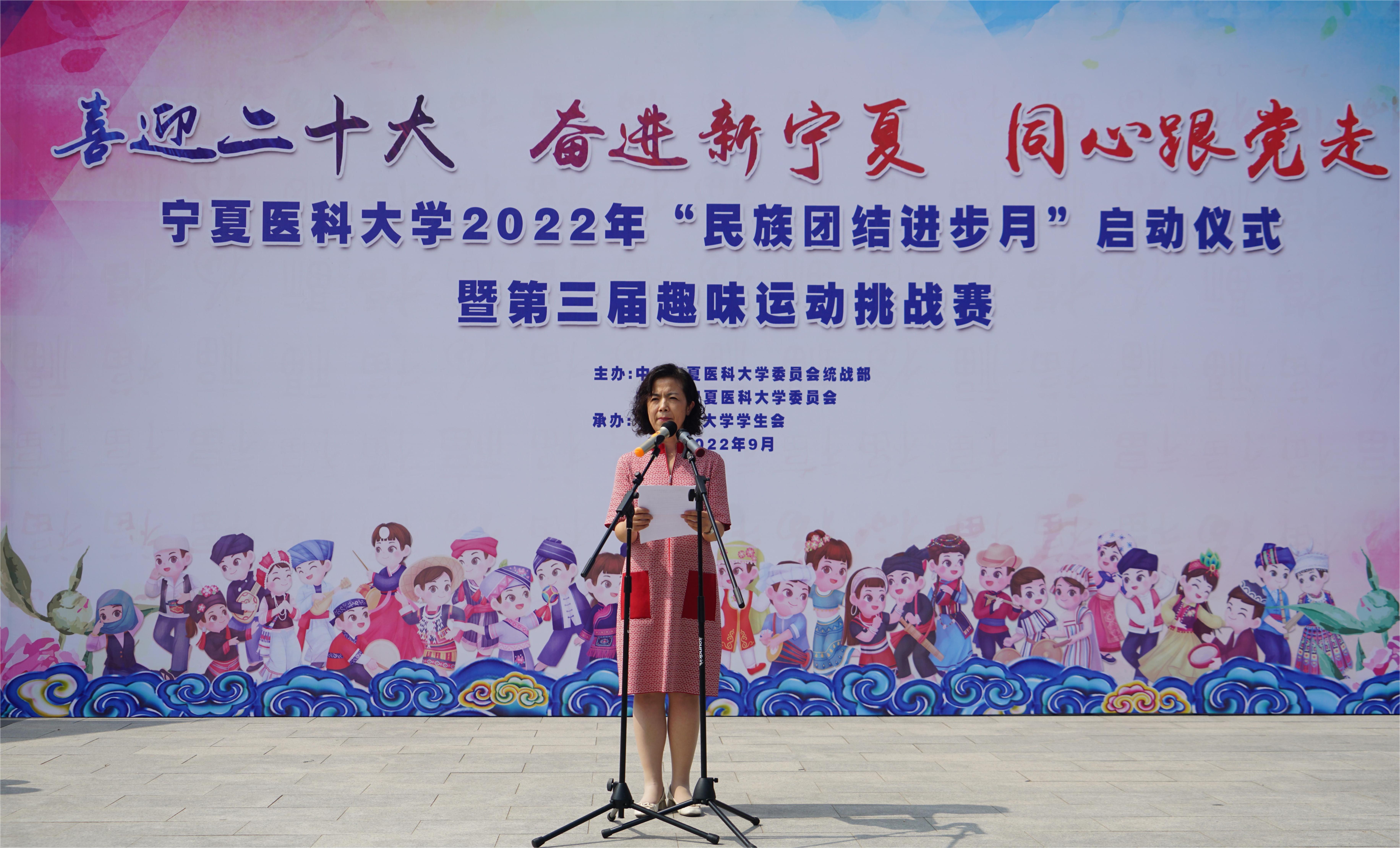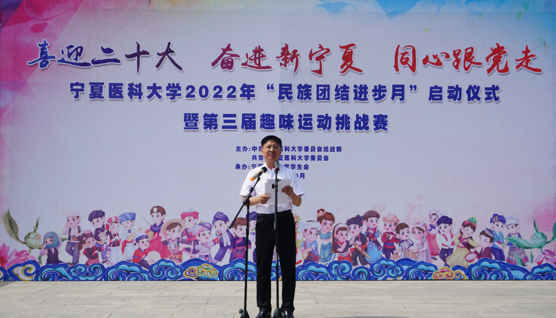 为深入学习宣传贯彻习近平总书记视察宁夏重要讲话和重要指示批示精神,认真落实自治区第十三次党代会精神,以铸牢中华民族共同体意识为主线,加强各民族交往交流交融,团结一心、共同奋斗,以实际行动迎接党的二十大胜利召开。2022年9月15日中午由学校党委统战部、团委联合主办、校学生会承办的“喜迎二十大 奋进新宁夏 同心跟党走”澳门十大信誉好的网站2022年“民族团结进步月”启动仪式暨第三届趣味运动挑战赛在雁湖校区尚德广场举行。学校党委常委、副校长刘志宏,各基层党团组织负责人及学生代表共计400余名师生参加了此次活动。