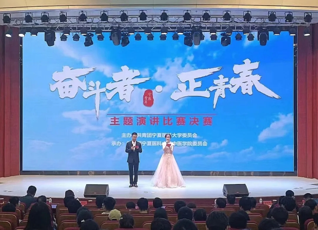 为深入学习宣传贯彻党的二十大精神,坚持不懈用习近平新时代中国特色社会主义思想凝心铸魂,引导宁医青年坚定不移听党话、跟党走,怀抱梦想又脚踏实地,敢作敢为又善作善成,立志做有理想、敢担当、能吃苦、肯奋斗的新时代好青年。4月19日,由学校团委主办,中医学院团委承办的“奋斗者 正青春”青年演讲比赛决赛在雁湖校区知行楼明德报告厅举办。学校党委常委、副校长刘志宏,宁夏朗诵艺术学会常务副主席钱朝晖,学生处、研究生院、团委负责人,各学院党委(党总支)副书记、团委(团总支)书记、辅导员及青年学生代表近800人参加活动。