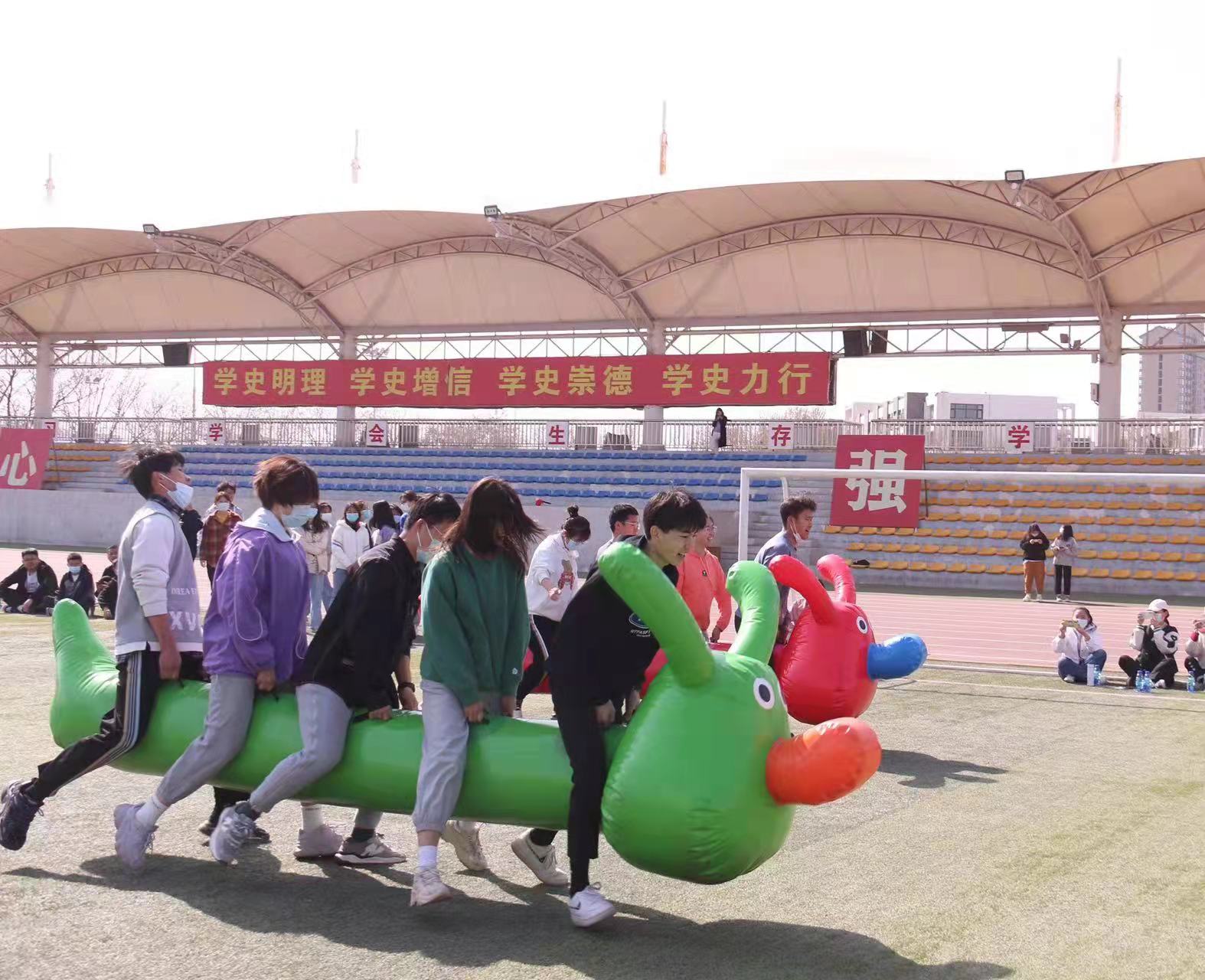 活动以班级为单位,共分为旱地龙舟、击鼓颠球、珠行万里、趣味接力四个项目。活动开始,赵超老师鼓励同学们积极参与,在运动中强健体魄,共同抗疫。随后,各个项目陆续开始,各班有序组织同学们积极参与,操场上顿时充满了欢声笑语。在紧张刺激的比赛中,同学们斗志昂扬,每一位同学都奋力拼搏,欢呼声与加油声此起彼伏。团队中同学们分工明确,纷纷为集体荣誉出谋划策,鼓劲加油,展现了不畏困难,团结协作的团队风采。