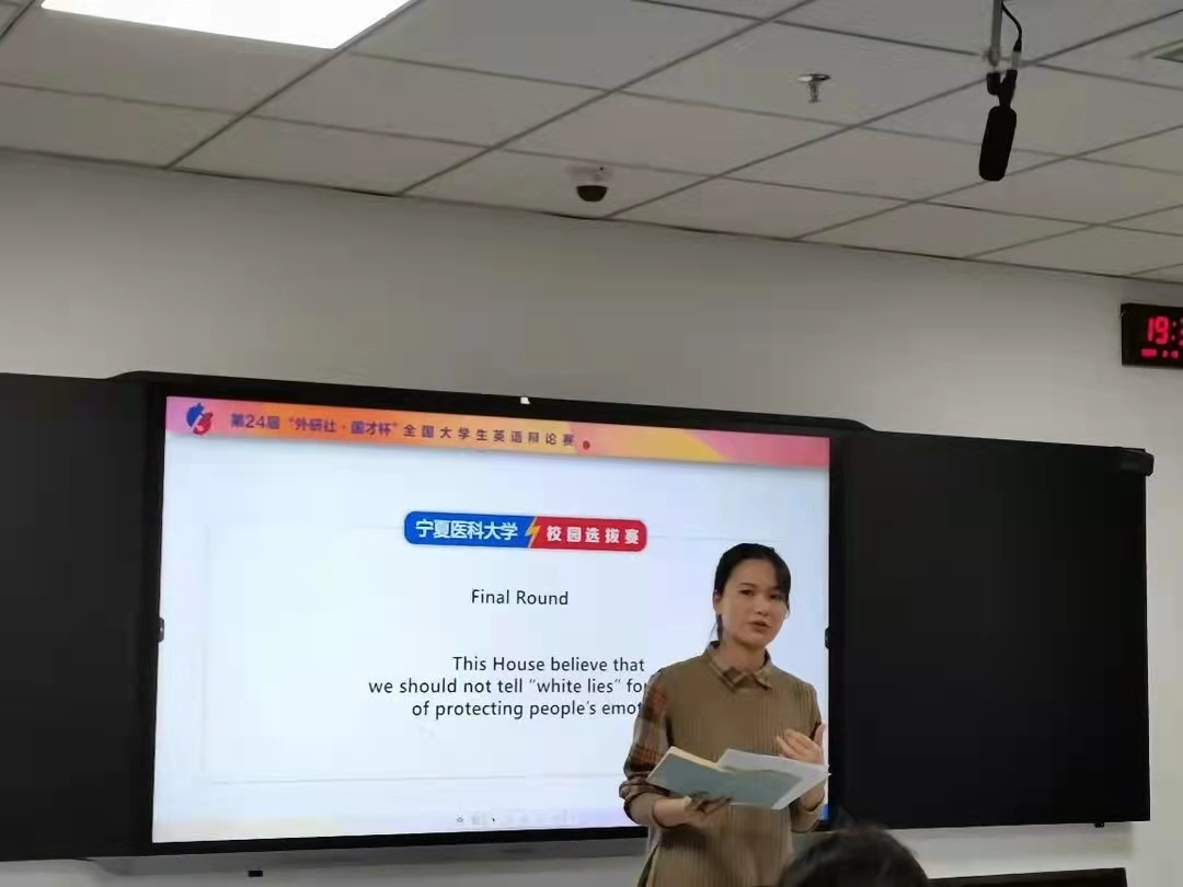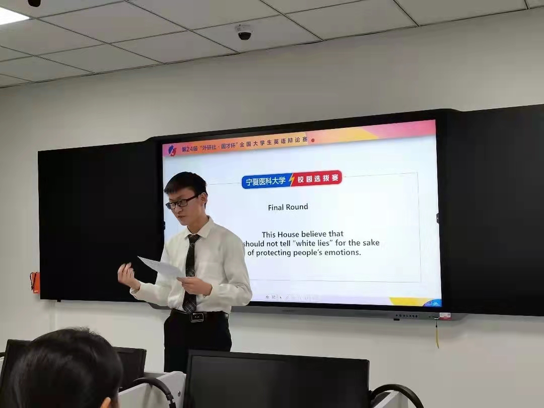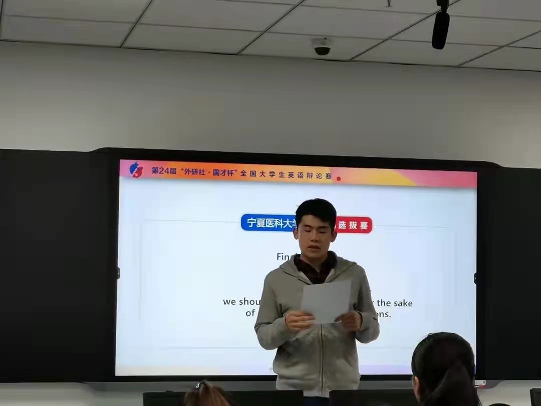 春风拂面,又是Spring return。青春不留白,英语无底线。“外研社—国才杯”全国大学生英语辩论赛校园选拔赛在3月18日19:00于新综合教学楼7楼语音室拉开帷幕。宁医学子舌枪唇战,赛事精彩纷呈。现场不时响起热烈掌声,激动人心的比拼侈人观听。