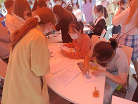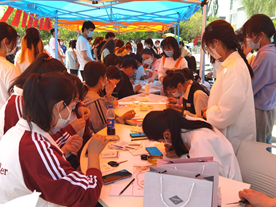 传承非遗文化,描绘传统之美。景泰蓝金丝沙画社的社员们动手制作了多副精美的沙画小作品,在尚德广场公开展示,并邀请大家尝试创作。此次活动不但能提高同学们鉴赏艺术的能力,还能通过答题与沙画创作的方式亲身体验沙画的魅力,为迎接党的二十大胜利召开献礼。