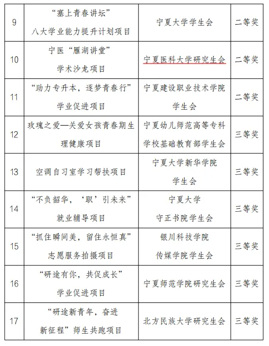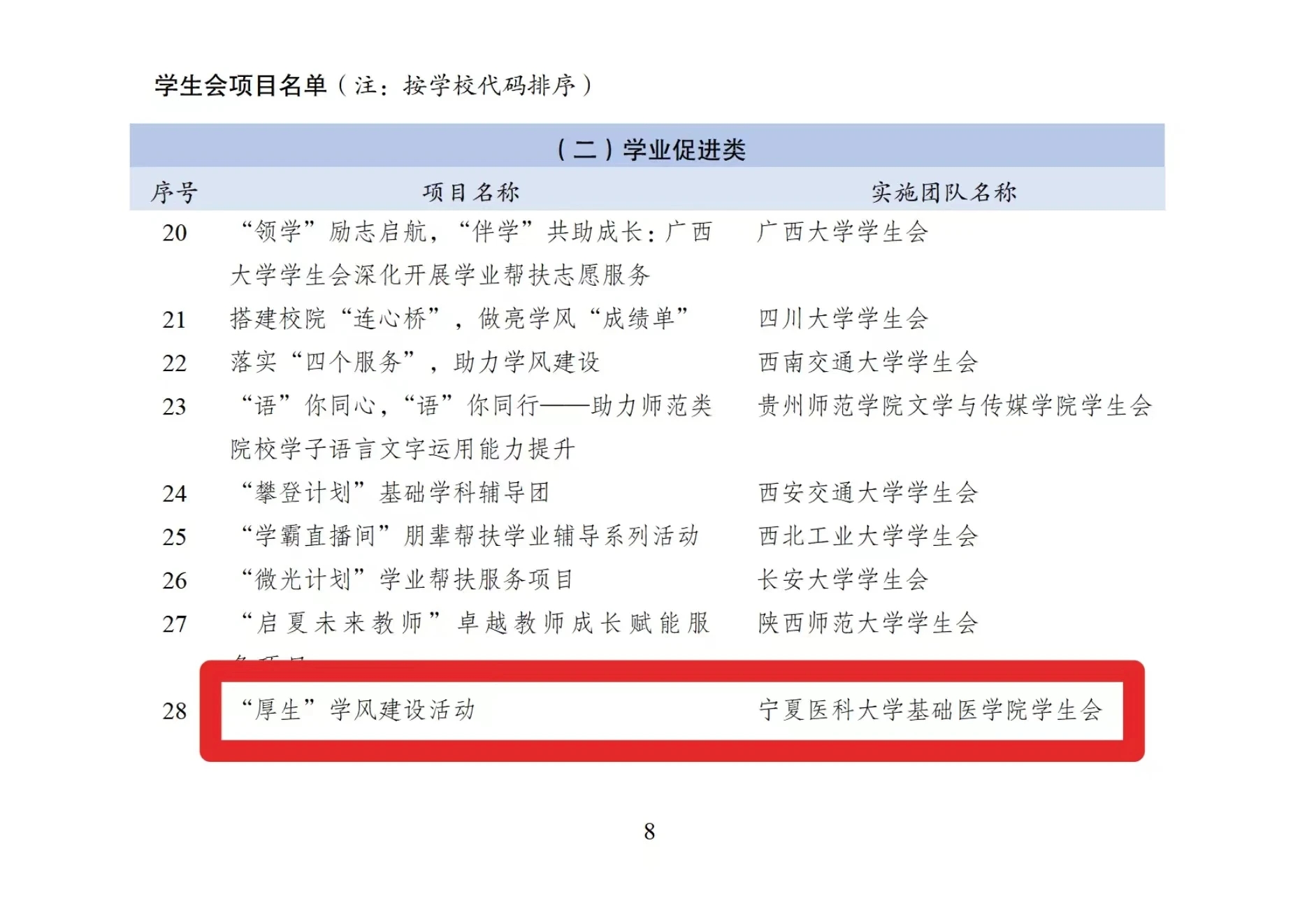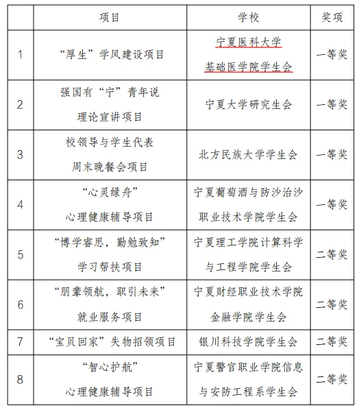十大信誉基础医学院学生会“厚生”学风建设项目、研究生会宁医“雁湖讲堂”学术沙龙项目突出重围,分别荣获一等奖、二等奖。